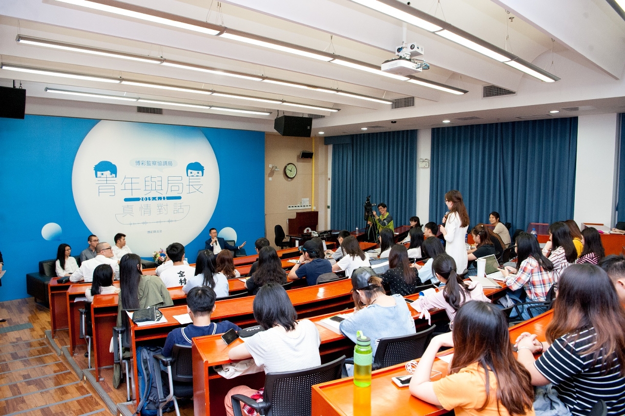 Sendo os jovens pilar do futuro da sociedade, a sua voz e sugestões têm merecido particular importância pelo Governo da RAEM. Nessa perspectiva, teve lugar no passado dia 11 de Abril na Faculdade de Direito da Universidade de Macau (UMAC), um encontro dos jovens com o director da DICJ, organizado por este organismo. Este evento proporcionou um espaço aos estudantes para diálogo aberto com o Dr. Paulo Martins Chan, director da DICJ. Durante o encontro, os jovens falaram sobre perspectivas do futuro desenvolvimento do sector do jogo na RAEM, assim como apresentaram sugestões para o aperfeiçoamento da legislação da exploração de jogos de fortuna ou azar.
