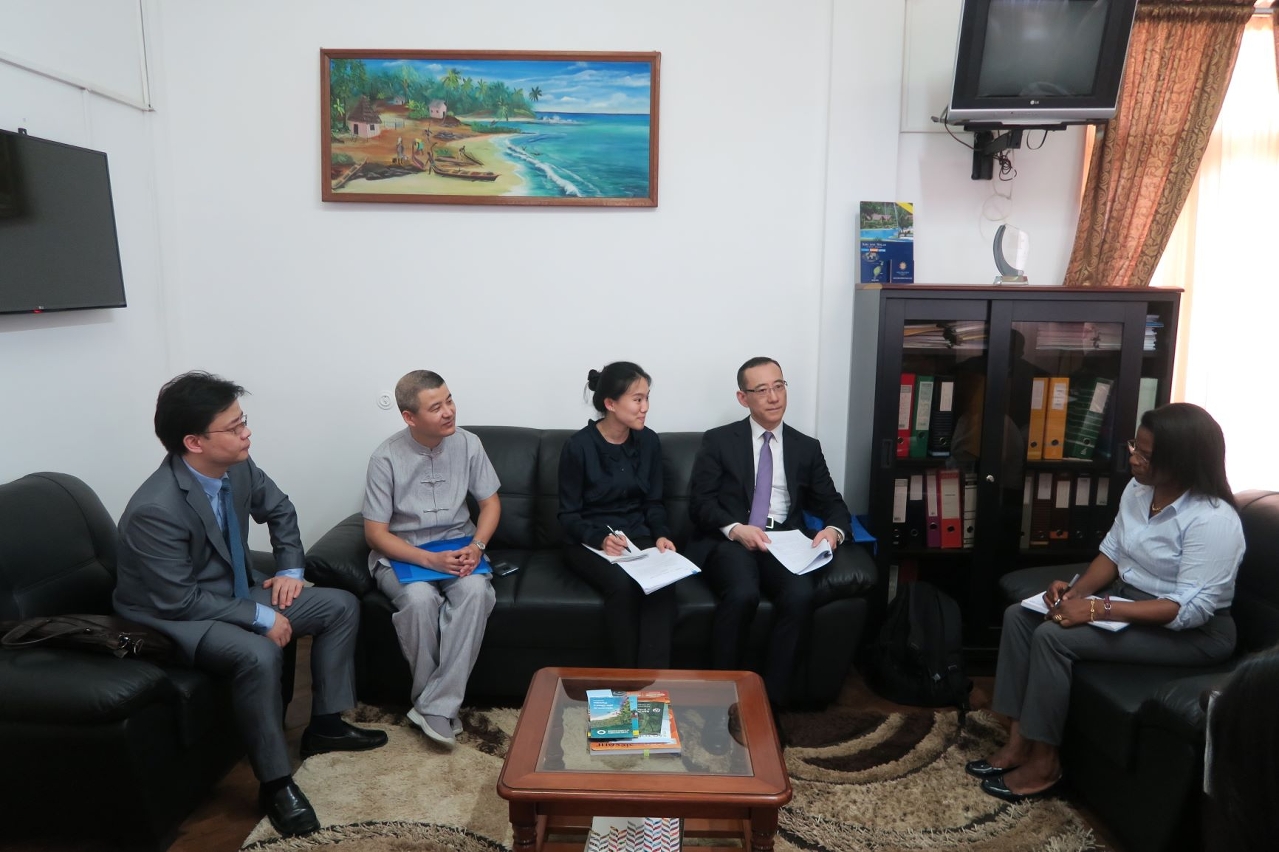 Durante a estadia em São Tomé e Príncipe, a Delegação foi recebida em audiência pelo Ministro do Planeamento, Finanças e Economia Azul, Dr. Osvaldo Vaz, pela Ministra do Turismo, Cultura, Comércio e Indústria, Dra. Maria da Graça Lavres e pela Ministra dos Negócios Estrangeiros, Cooperação e Comunidades, Dra. Elsa Pinto. Foi ainda realizada uma reunião de intercâmbio com a Embaixada da China em São Tomé e Príncipe. A Delegação chinesa e alguns representantes dos serviços públicos de São Tomé e Príncipe trocaram impressões sobre diversos assuntos, os quais abrangem o engajamento do desempenho do Fórum de Macau e do papel de Macau enquanto Plataforma de Serviços para a Cooperação Comercial entre a China e os Países de Língua Portuguesa, o cabal aproveitamento do Fundo de Cooperação e Desenvolvimento China-Países de Língua Portuguesa, a promoção conjunta das relações económicas e comerciais bilaterais, o apoio ao desenvolvimento contínuo das Pequenas e Médias Empresas e do sector de Turismo e, por último, o reforço da cooperação na Educação etc. Foi ainda abordado o tema da promoção e divulgação dos produtos e serviços locais de São Tomé e Príncipe e a entrada no Mercado da China através da participação na 2.ª edição da Exposição Internacional de Importações da China, a ter lugar em Novembro. As duas partes ainda discutiram acerca dos trabalhos de preparação do 14.º Encontro de Empresários para a Cooperação Económica e Comercial entre a China e os Países de Língua Portuguesa a ser realizado em Julho do ano corrente em São Tomé e Príncipe, e a 6.ª Conferência Ministerial do Fórum de Macau que terá lugar em 2020. A Delegação ainda realizou uma visita ao Projecto II de Assistência Técnica Agropecuária da China em São Tomé e Príncipe.