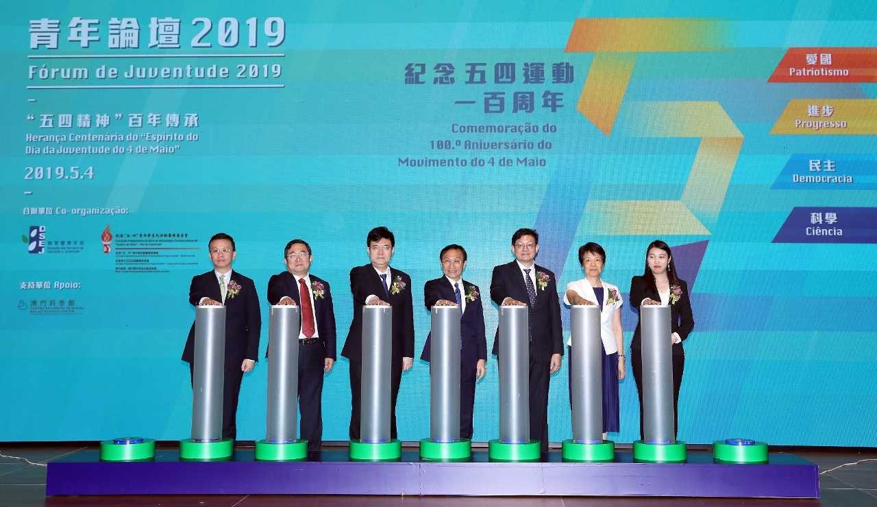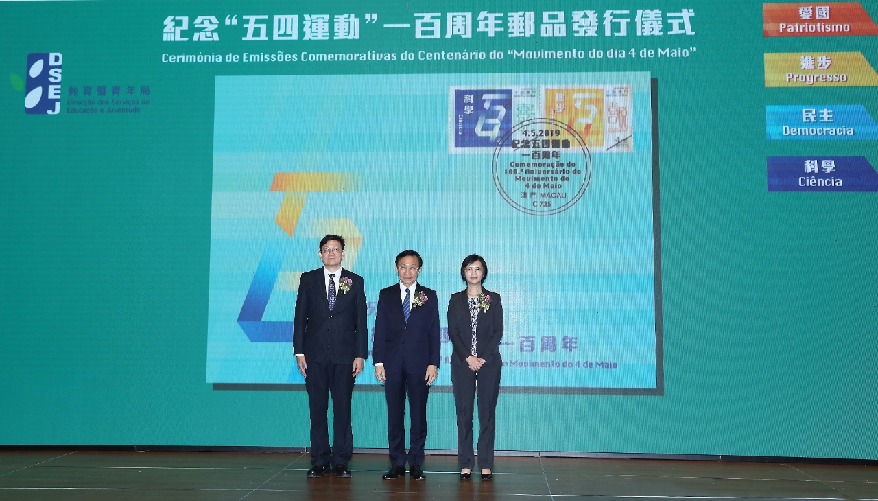 Para comemorar o 100.º Aniversário do “Movimento de 4 de Maio” e incentivar os jovens a transmitirem e promoverem o “espírito do 4 de Maio”, “patriotismo, progresso, democracia e ciência”, inspirando nos jovens a coragem para inovarem e assumirem uma responsabilidade social, a Direcção dos Serviços de Educação e Juventude (DSEJ) organizou uma série de actividades, nomeadamente, a cerimónia do “Hastear da Bandeira Nacional pelo sector escolar de Macau no Dia da Juventude”, em 4 de Maio, a cerimónia de Juramento da Equipa Escolar de Macau Responsável pelo Içar de Bandeira, a Exposição Itinerante Comemorativa do 100.º Aniversário do “Movimento do 4 de Maio”, a cerimónia de assinatura do protocolo do “Programa de Aliança das Associações Juvenis da Grande Baía Guangdong-Hong Kong-Macau, a cerimónia da Emissão Filatélica Comemorativa do Centenário do “Movimento de 4 de Maio”, o Fórum de Juventude 2019 e a cerimónia de abertura do “Pavilhão do Sentimento de Amor pela Pátria”.
