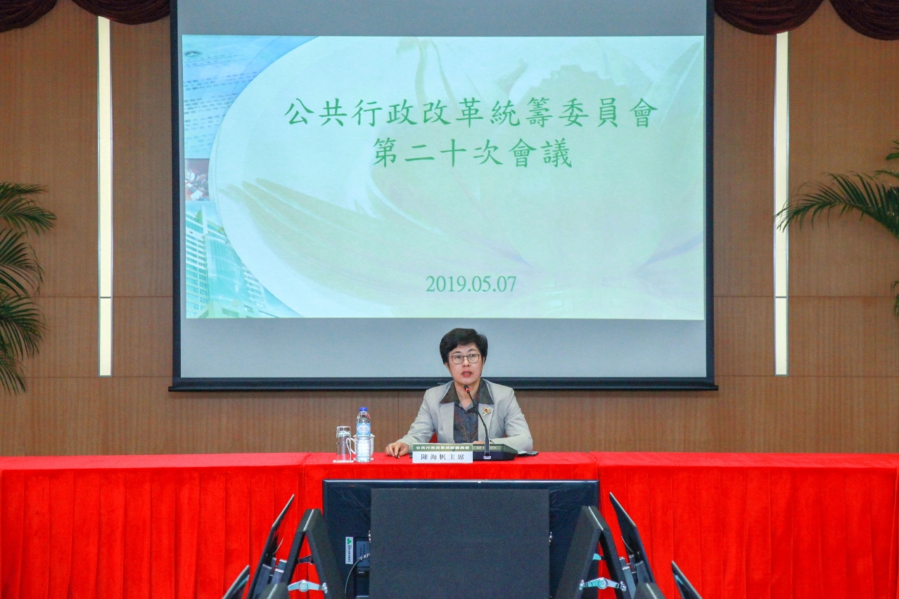 A Comissão de Coordenação da Reforma da Administração Pública realizou hoje à tarde (7 de Maio) na Sede do Governo uma reunião plenária, presidida pela Presidente da Comissão, a Secretária para a Administração e Justiça, Chan Hoi Fan, na qual serão discutidos assuntos sobre o desenvolvimento do Governo Inteligente.