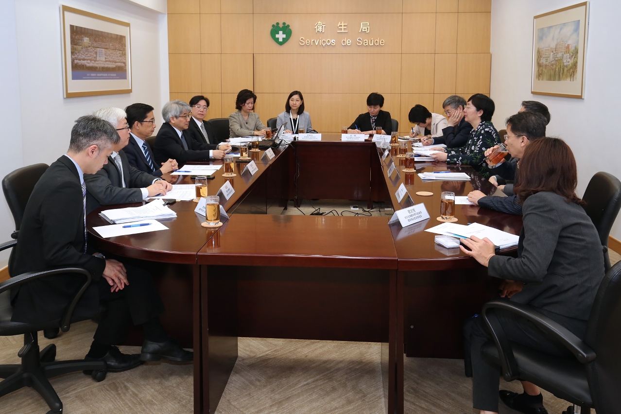 Participaram também nesta reunião, o Subdirector dos Serviços de Saúde, Dr. Cheang Seng Ip, a Chefe da Divisão de Inspecção e Licenciamento, Dr.a Cheang Im Hong e o Chefe da Divisão de Farmacovigilância e Farmacoeconomia, Dr. Lei Sai Ian.