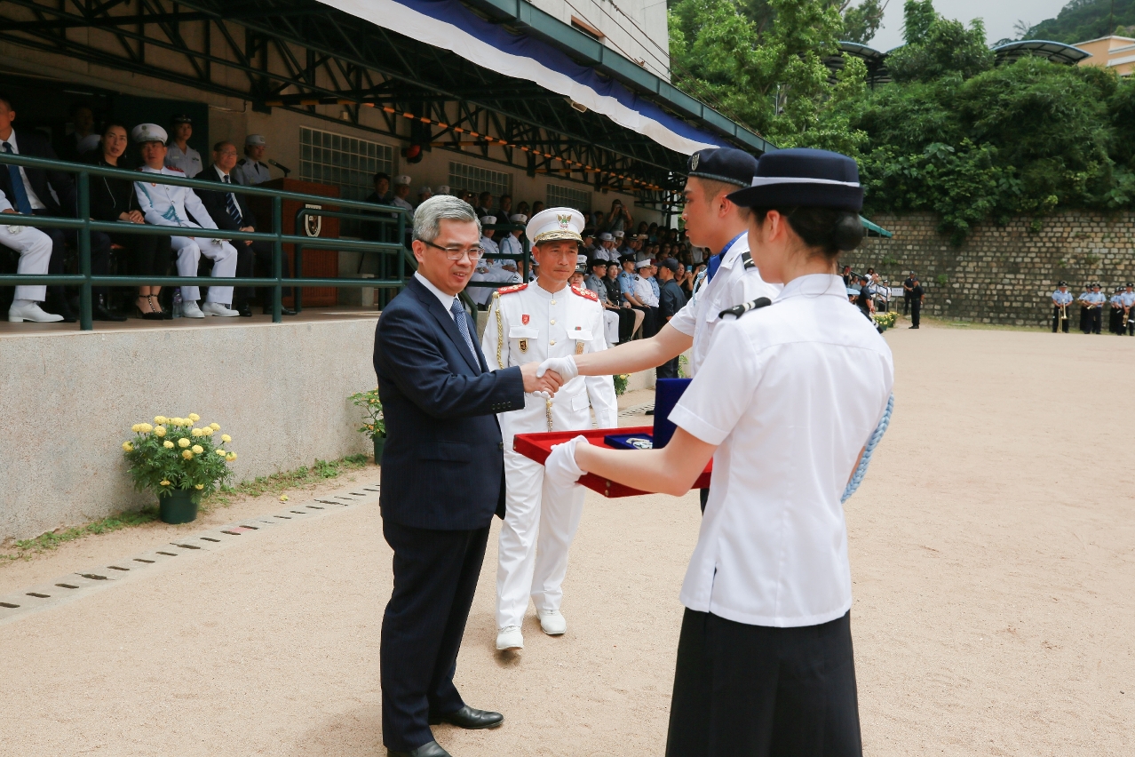 A Cerimónia de Encerramento do Curso de Formação de Ingresso para a Categoria de Verificador Alfandegário de 2018 decorreu, hoje (dia 15), na Escola Superior das Forças de Segurança de Macau, em Coloane, a qual foi presidida pelo Exmo. Sr. Secretário para a Segurança, Wong Sio Chak.