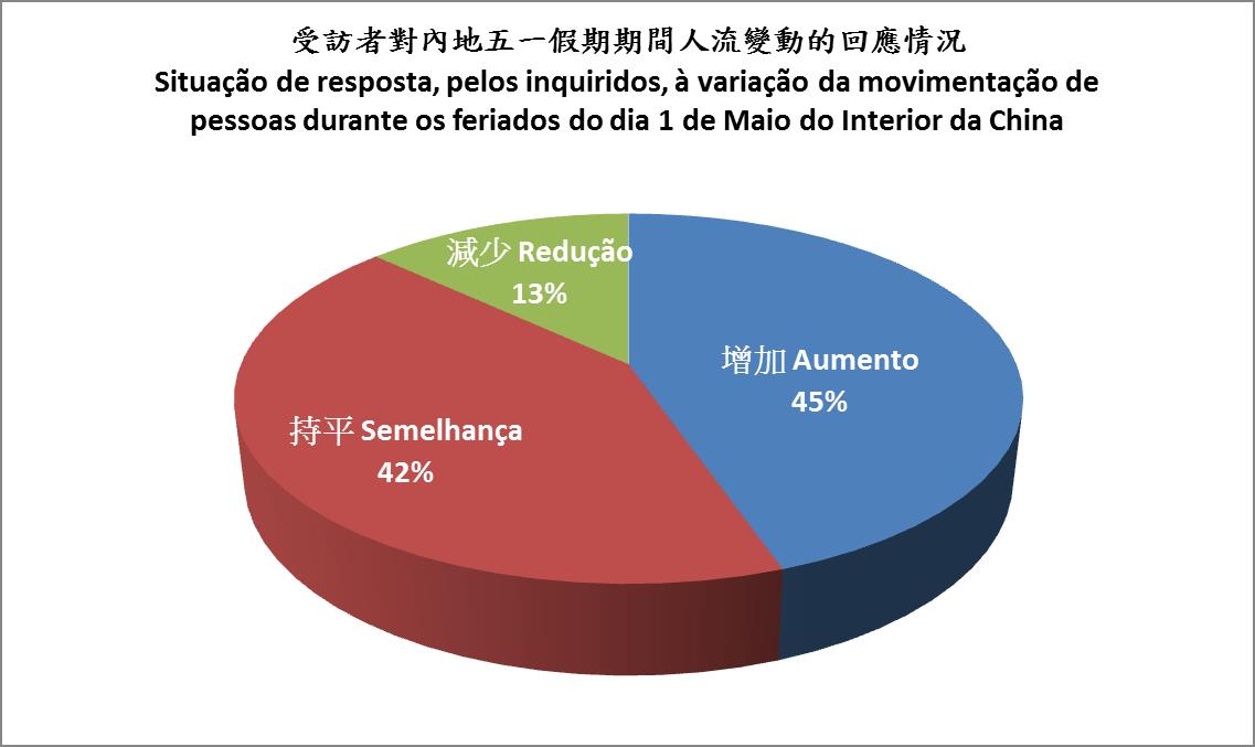 Durante o período compreendido entre dias 6 e 8 de Maio, a Direcção dos Serviços de Economia (DSE) enviou pessoal a diferentes zonas da Península de Macau e das Ilhas para proceder ao inquérito de conjuntura aos estabelecimentos comerciais sobre os feriados do dia 1 de Maio do Interior da China, tendo sido inquiridos 1.562 estabelecimentos comerciais. Os locais envolvidos neste inquérito abrangeram Zona Norte, Avenida de Horta e Costa, Zona Central, Rua da Praia do Manduco, ZAPE, Taipa, resort hotels and shoppes na zona do Cotai, etc. Os resultados do inquérito revelaram que os feriados do dia 1 de Maio do Interior da China produziram um efeito de estímulo a todo o negócio dos sectores de restauração e comércio a retalho de Macau, e a movimentação de pessoas e o volume de negócios registaram aumentos face aos dias normais. As lojas de determinadas zonas e sectores também afirmaram que o seu volume de transacções teve um crescimento quando comparado com o período homólogo do ano passado. Ademais, verificou-se uma relação de proporcionalidade directa entre a movimentação de pessoas e o volume de negócios das lojas na maioria das zonas durante os referidos feriados.