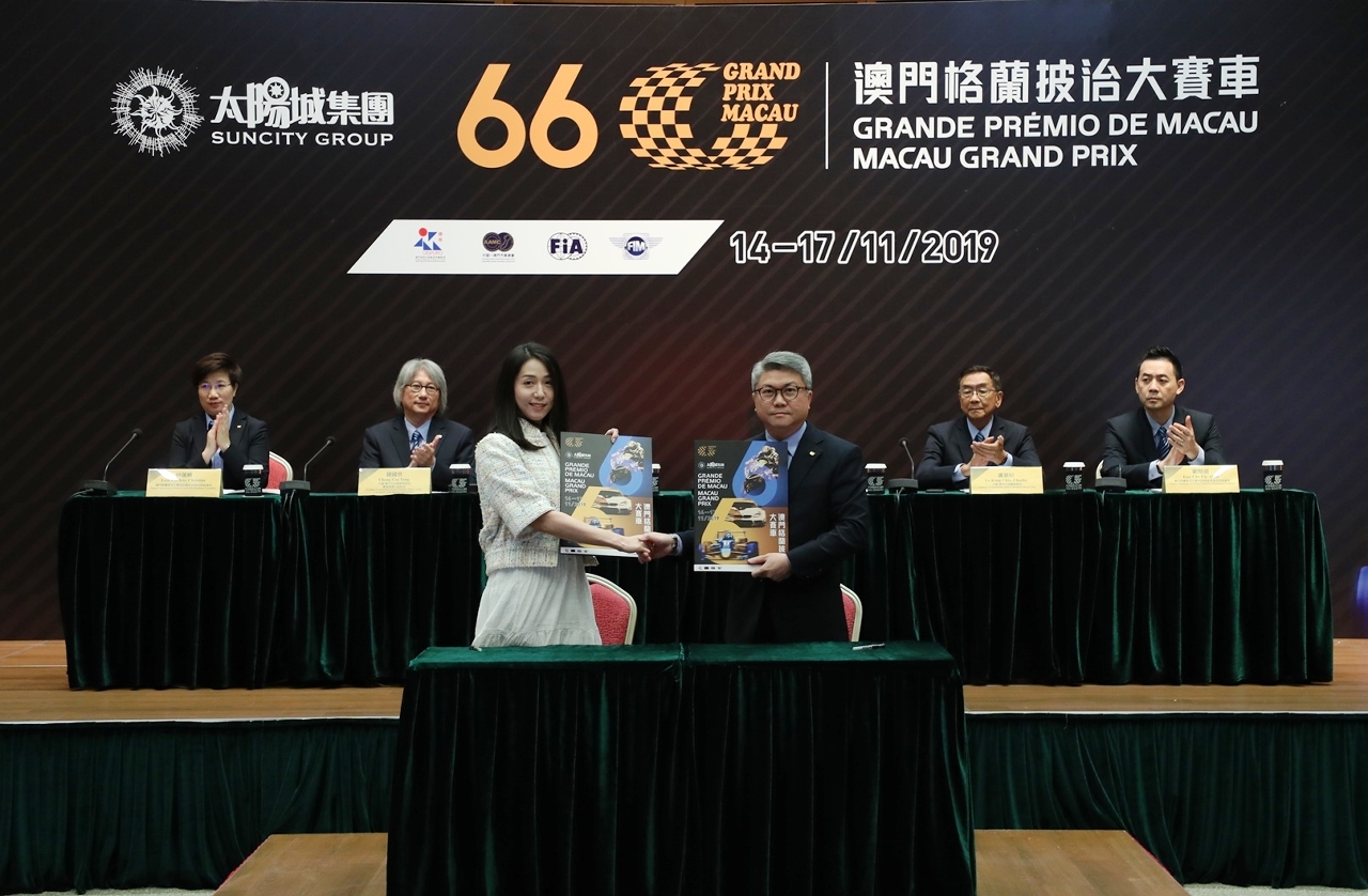 Na conferência de imprensa, Pun Weng Kun e Gina Lei assinaram o acordo de patrocínio e oficializaram a cerimónia com a apresentação simbólica de um cheque. O Suncity Grupo torna-se o patrocinador de título do evento pelo sexto ano consecutivo e este ano o Grande Prémio será oficialmente chamado 66º Grande Prémio de Macau - Suncity Grupo.