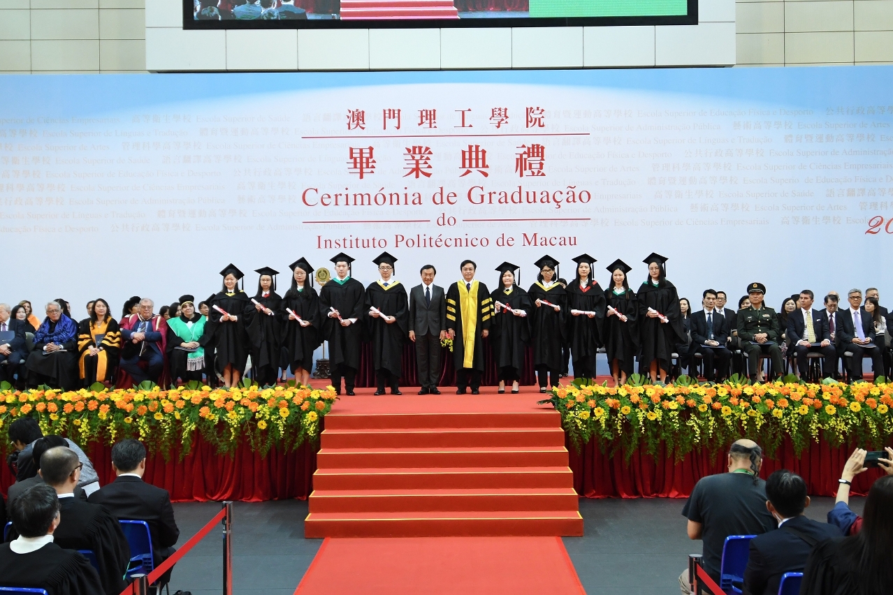 No seu discurso, o Chefe do Executivo da RAEM, Doutor Fernando Chui Sai On, frisou que o Governo da RAEM tem como estratégia de desenvolvimento “Promover a prosperidade de Macau através da educação” e “Construir Macau mediante a formação de talentos“, esforçando-se pelo desenvolvimento equilibrado da educação para promover o desenvolvimento de educação para todos, beneficiando os cidadãos e impulsionando a igualdade social e aproveitando a oportunidade da entrada em vigor do novo “Regime de Ensino Superior de Macau” para impulsionar o desenvolvimento do ensino superior rumo a uma nova era. Concluiu que “Assim, o Governo da RAEM estimula as instituições de ensino superior locais a inovar e a tirar partido das suas próprias especificidades e vantagens no domínio do ensino; a promover a ligação da pesquisa universidade-indústria, a melhorar a capacidade de inovação na área das ciências e tecnologias; a preparar mais quadros qualificados que ajudem a diversificação económica; a optimizar permanentemente as suas instalações pedagógicas e o ambiente de ensino; a reforçar a formação docente, assim assegurando a melhoria contínua da qualidade pedagógica. O Governo da RAEM continua a apoiar o IPM a desenvolver a sua missão privilegiada na formação de talentos aplicados, a oferecer, de acordo com a lei e de forma aplicada, novos cursos de mestrado e doutoramento, a realizar a investigação interdisciplinar, contribuindo assim para desenvolver Macau como base de formação de talentos bilingues que possam ter um papel chinês-português e acelerando a construção de “um centro e uma plataforma” (um centro mundial de turismo e lazer, e uma plataforma de comunicação entre a China e os Países Lusófonos), bem como apoiando a preparação de mais talentos que possam ter um papel activo na implementação das estratégias nacionais “Uma Faixa, Uma Rota” e “Grande Baía de Guangdong – Hong Kong – Macau”. No seu discurso, o Chefe do Executivo da RAEM estimulou os alunos graduados e jovens a desenvolverem-se a par do desenvolvimento de Macau rumo a uma nova fase, e do desenvolvimento da Pátria rumo a uma nova era,” afirmando que: “Vós, como uma nova geração que se encontra numa nova era de desenvolvimento, progredireis a par do desenvolvimento tanto da Pátria, como de Macau. Esta nova era abre-vos mais espaços de crescimento. Desejo sinceramente que todos vocês, neste mundo global, aproveitem bem a vossa juventude e energia, tendo sempre em mente a vossa missão histórica. Atenham-se às vossas crenças, tenham boa saúde e objectivos bem definidos, estudando sempre com diligência, por forma a realizar as vossas aspirações e os vossos sonhos.”