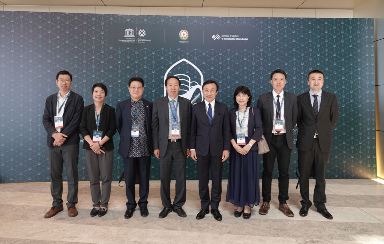 No decorrer da 43.ª Sessão do Comité do Património Mundial, Alexis Tam e os membros da comitiva do Governo da RAEM aproveitaram a ocasião para trocar impressões sobre o trabalho relacionado com a salvaguarda do património cultural com a equipa liderada pelo Director da Administração Estatal do Património Cultural da RPC, Liu Yuzhu.