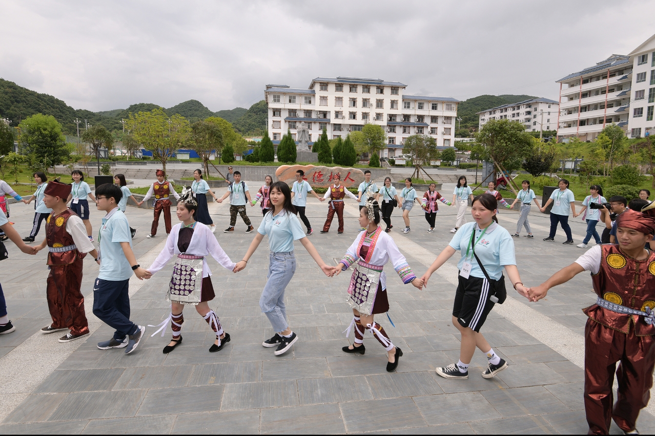 Na ida ao distrito de Congjiang, Sónia Chan, juntamente com os 50 alunos do ensino secundário de Macau, visitaram a “Segunda Escola Secundária de Minorias”, num evento de intercâmbio e confraternização com 50 dos estudantes locais. Tiveram oportunidade de conhecer as instalações, nomeadamente, o edifício principal e a sala de artes visuais, entre outros espaços. Seguidamente, Sónia Chan, Zhang Rongshun, os jovens de Macau e da “Segunda Escola Secundária de Minorias”, participaram num, evento de danças e cantares tradicionais “Cai Getang” do grupo étnico Dong.