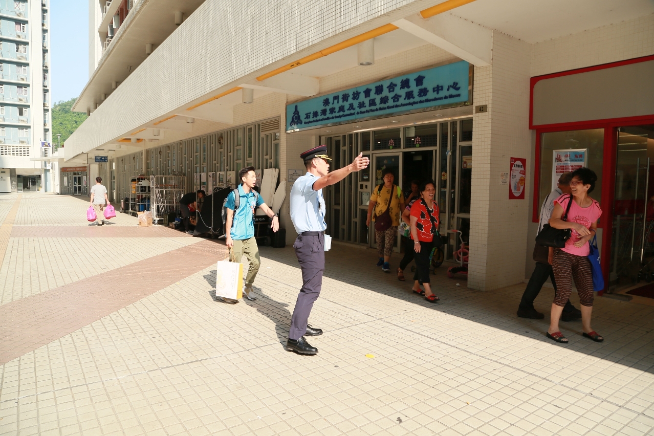 Para reforçar a consciência dos moradores na prevenção de desastres e do risco, bem como o entendimento sobre os procedimentos da evacuação, a Escola Superior das Forças de Segurança de Macau realizou, às 15 horas da tarde do dia 18 de Julho, em colaboração com o Instituto de Acção Social e a Direcção dos Serviços Meteorológicos e Geofísicos, um “Simulacro de Evacuação por Zonas”, e durante o qual, além de divulgação dos conhecimentos da protecção civil aos moradores, guiou os moradores para se inteirarem do funcionamento do centro de abrigo e do simulacro de evacuação por zonas.