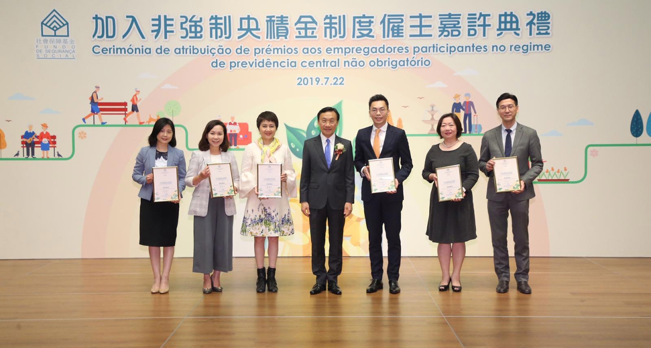 No dia 22 de Julho, às 16H30, no Centro de Ciência de Macau, Salão de Convenções, o FSS realizou a “Cerimónia de atribuição de prémios aos empregadores participantes no regime de previdência central não obrigatório”, presidida pelo Senhor Secretário para os Assuntos Sociais e Cultura, Alexis Tam Chon Weng. No discurso, o Presidente do Conselho de Administração do FSS, Iong Kong Io expressou que o regime de previdência central não obrigatório foi implementado desde 2018, em Julho do ano passado, foi realizada pela primeira vez uma cerimónia de atribuição de prémios aos empregadores e foram louvados os 78 primeiros empregadores participantes no regime. Um ano depois, o número de empregadores que aderiram ao plano conjunto de previdência aumentou para 186, incluindo os empregadores de seis principais operadoras de jogos que representam uma grande proporção de número de trabalhadores de Macau, empregadores de instituições de ensino, das empresas de utilidade pública, de hóteis, de serviços sociais e instituições comerciais, entre outros. De entre os empregadores participantes, cerca de 77% adiram ao regime através da forma de articulação; enquanto, os restantes 23% destes criaram, pela primeira vez, uma protecção de velhice para os seus trabalhadores. Salientou que a implementação do regime de previdência central não obrigatório provocou a atenção da sociedade em termos de protecção de vida pós-aposentação dos trabalhadores. O Senhor Secretário incentivou os empregadores que ainda não aderiram ao regime de previdência central não obrigatório a aderirem o mais cedo possível ao regime e acumularem conjuntamente com os trabalhadores uma melhor protecção na vida pós-aposentação.