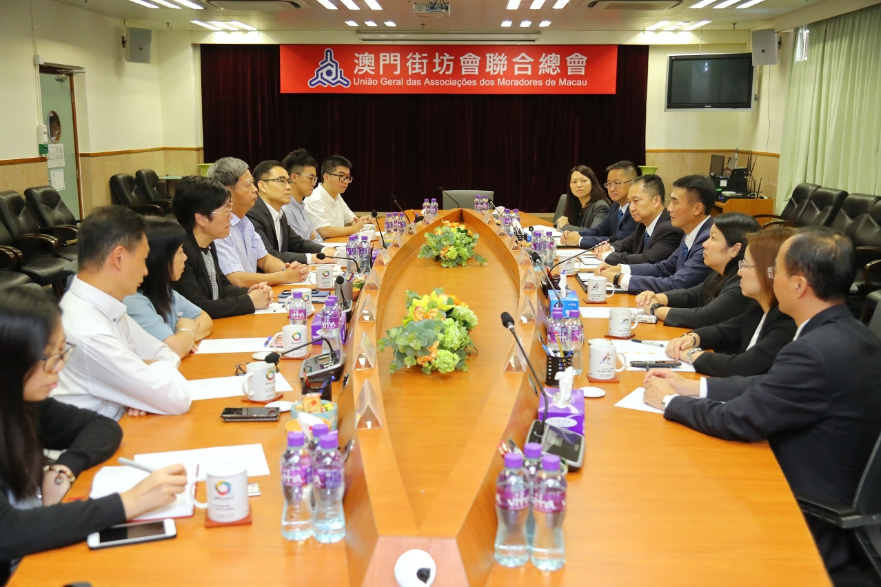 No encontro, sob a orientação da Presidente da referida Associação, Leong Heng Kao, fez a apresentação das instalações do Edifício da União Geral das Associações dos Moradores, a situação actual da Associação, e os serviços sociais proporcionados. O Director Cheng Fong Meng referiu que, a DSC desempenha as funções de execução das penas privativas de liberdade e de internamento dos jovens infractores, promovendo à reintegração social dos mesmos, de qualquer modo, os reclusos e os jovens internados finalmente vão ser libertados da Prisão e do Instituto de Menores. Para ajudar estes a reintegrarem-se na sociedade, a DSC tem vindo a prestar aconselhamento, educação escolar e profissional adequados aos reclusos e jovens internados, mas, o apoio e receptividade da família e sociedade são os factores mais importantes para uma reinserção social com sucesso. Por isso, os serviços correccionais devem unir as forças dos diversos sectores da sociedade e reforçar a participação e apoio comunitários, para poder apoiar de forma mais completa e eficaz a reintegração dos reclusos e jovens internados, cumprindo concretamente a missão correccional.