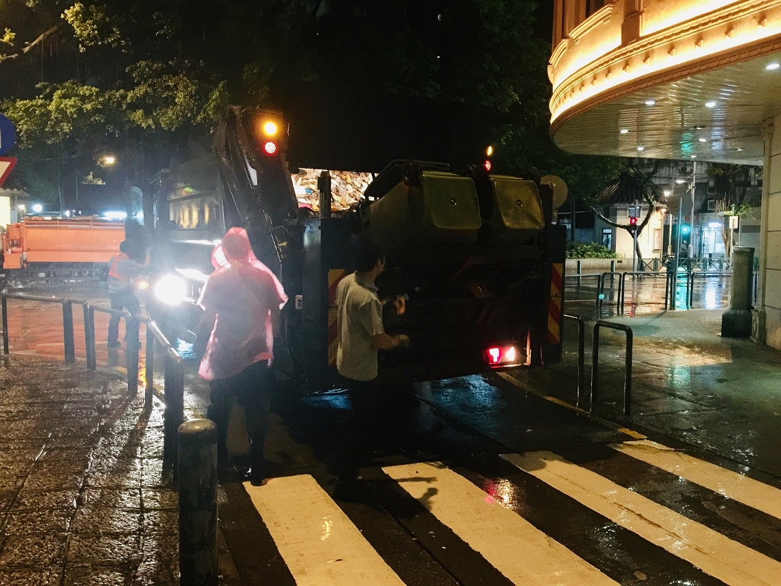 Os trabalhadores responsáveis pelo saneamento dirigiram-se a várias zonas para fazer inspecção, supervisionar de forma sustentável o normal funcionamento das estações elevatórias e desobstruir de imediato os sumidouros entupidos pelo lixo. Durante o período do tufão, o funcionamento das estações elevatórias de águas pluviais e residuais foi normal.
