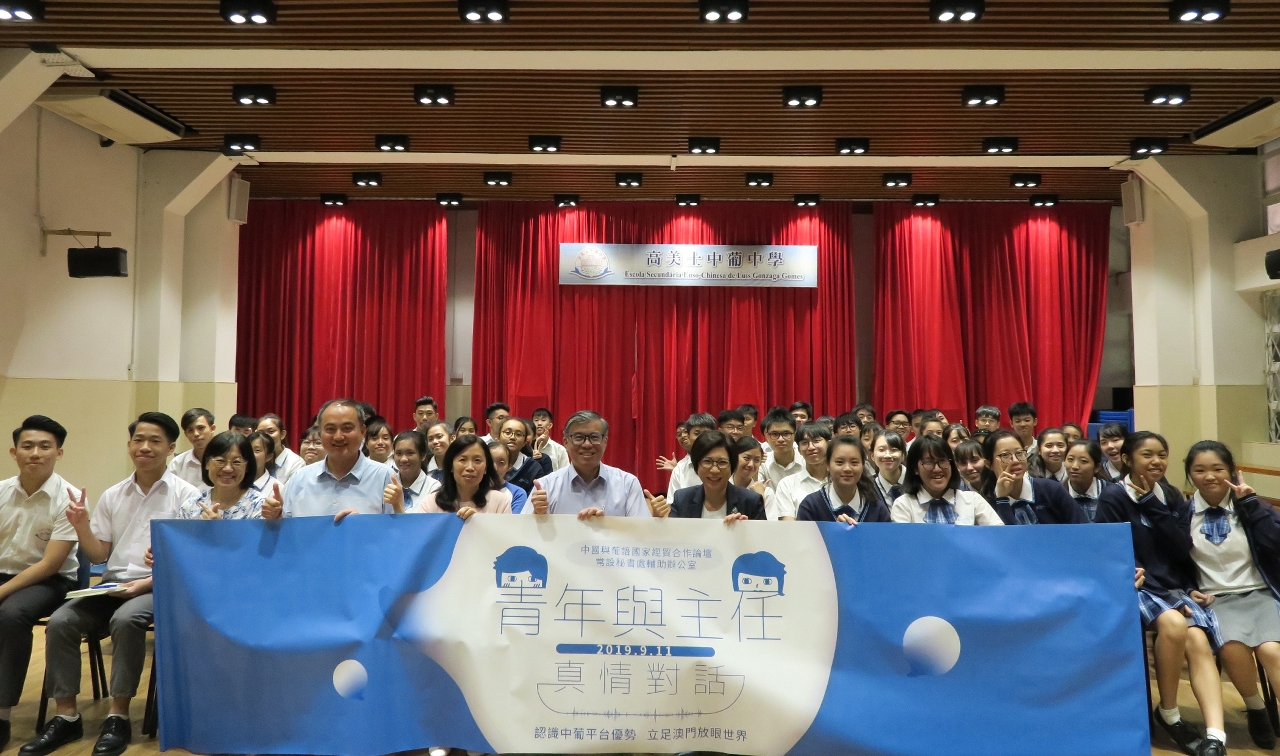 O Gabinete de Apoio do Secretariado Permanente do Fórum de Macau organizou, no dia 11 de Setembro, na Escola Secundária Luso-Chinesa de Luís Gonzaga Gomes, uma sessão de “Diálogo Aberto entre a Coordenadora do Gabinete de Apoio do Secretariado Permanente do Fórum de Macau e os Jovens”. A Coordenadora do Gabinete de Apoio, Dr.ª Mok Iun Lei, teve a oportunidade de dialogar abertamente com mais de 50 alunos que frequentam o curso de língua portuguesa. A Coordenadora do Gabinete auscultou as opiniões dos alunos no sentido de aprofundar a comunicação e o intercâmbio com jovens de Macau. A Sessão também contou com a presença do Director desta escola, Dr. Leong Iao Cheng.