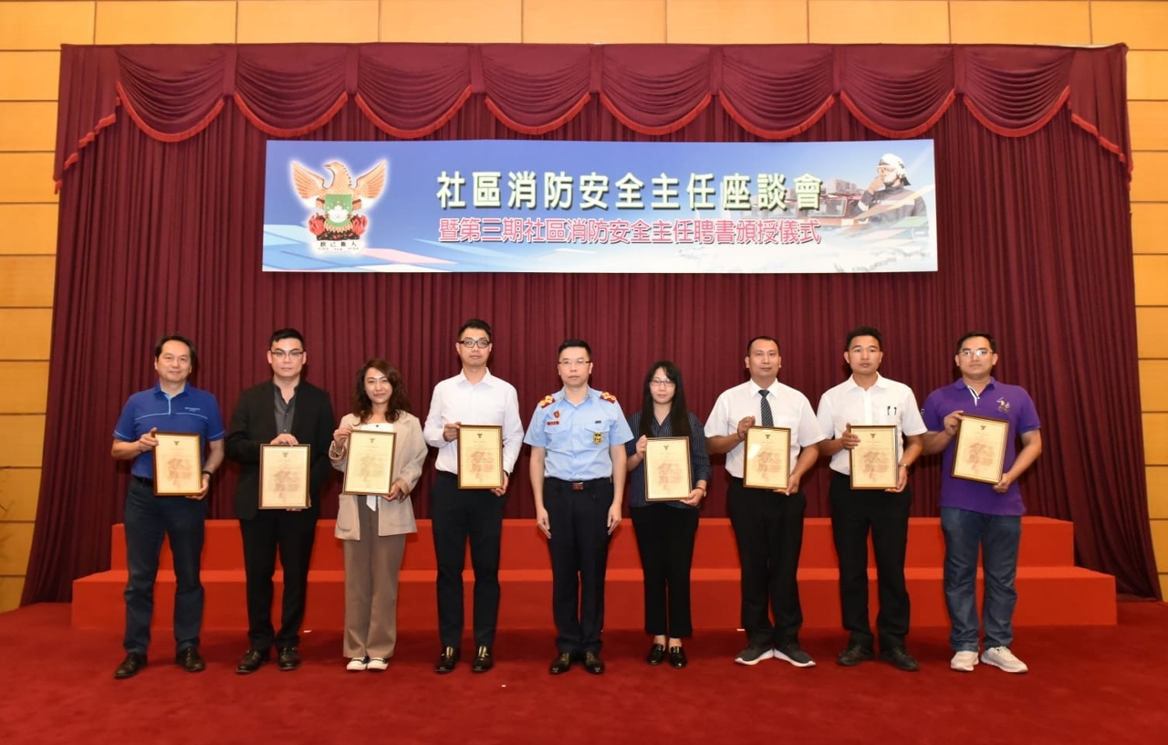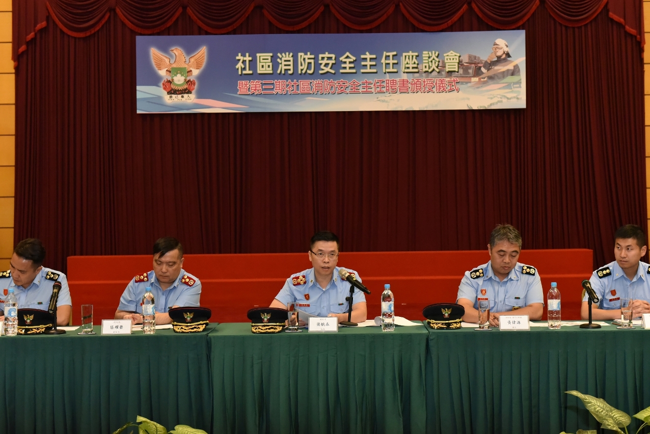 Na cerimónia, o Comandante do CB atribuiu certificados de nomeação à 3.ª fase do “Chefe de Segurança contra Incêndios Comunitária”, de modo a reforçar ainda mais a comunicação entre esta Corporação e a comunidade e continuar a recolher as situações sobre segurança contra incêndios em comunidades. Depois da cerimónia de atribuição, foi realizada logo a palestra. O Comandante do CB apresentou respectivamente as tarefas relacionadas com incêndios, socorros, emergências médicas, inspecções de segurança contra incêndios e divulgações e educação de prevenção contra incêndios do CB efectuadas no corrente ano e fez uma retrospecção do mecanismo do “Chefe de Segurança contra Incêndios Comunitária” estabelecido desde 2007 até agora, os “Chefes de Segurança contra Incêndios Comunitária” encaminharam 36 casos sobre riscos de incêndio para esta Corporação, os casos incluíram : obstrução dos caminhos de evacuação, tabuleta suspensa a ameaçar cair e problema alusivo à segurança dos combustíveis, para esta Corporação poder proceder rapidamente à inspecção e à correcção no local e encaminhar as situações inapropriadas e irregulares ao serviço competente para o acompanhamento, dando um grande apoio a esta Corporação no que concerne ao conhecimento profundo das situações sobre segurança contra incêndios comunitária, acrescentou ainda que irá realizar progressivamente o curso avançado de formação sobre “Chefe de Segurança contra Incêndios Comunitária”, de modo a atingir a revisão dos conhecimentos estudados e elevar ainda mais o nível profissional de protecção contra incêndios e emergência médica dos chefes de segurança contra incêndios comunitária, bem como continuar a intensificar a cooperação com os “Chefes de Segurança contra Incêndios Comunitária”, desempenhar plenamente o poder de “Polícia e Cidadão, a mesma missão” e salvaguardar conjuntamente um bom ambiente de segurança contra incêndios.