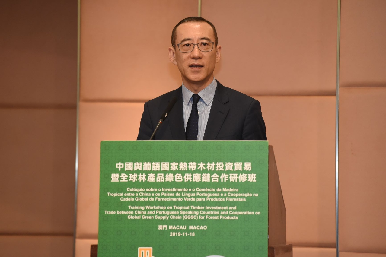 A Cerimónia de Abertura do Colóquio sobre o Investimento e o Comércio da Madeira Tropical entre a China e os Países de Língua Portuguesa e a Cooperação na Cadeia Global de Fornecimento Verde para Produtos Florestais, coorganizado pelo Centro de Formação do Fórum de Macau e Organização Internacional de Madeira Tropical (ITTO), e em colaboração com a Universidade de Macau, realizou-se no dia 18 de Novembro na sala de Lótus do World Trade Center em Macau.