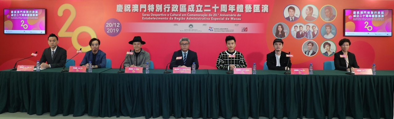 O “Sarau Desportivo e Cultural em Comemoração do 20.o Aniversário do Estabelecimento da Região Administrativa Especial de Macau” organizado pelo Governo da RAEM e com a colaboração do Instituto do Desporto, terá lugar no dia da comemoração, pelas 14:00, no Estádio do Centro Desportivo Olímpico, com a presença dos cantores de renome, nomeadamente Andy Lau, Sammi Cheng, Leon Lai, C AllStar, Hana Kuk, Phil Lam, Sean Pang, Tang Siu Hau, e também atletas de Macau. Hoje (dia 18), a entidade colaboradora organizou a conferência de imprensa para a apresentação dos detalhes da actividade, onde contou com a presença do Presidente do Instituto do Desporto Pun Weng Kun, do Vice-Presidente Lau Cho Un, da Vice-Presidente Lam Lin Kio e o grupo musical C AllStar, que presidiram à cerimónia do lançamento da iniciativa.