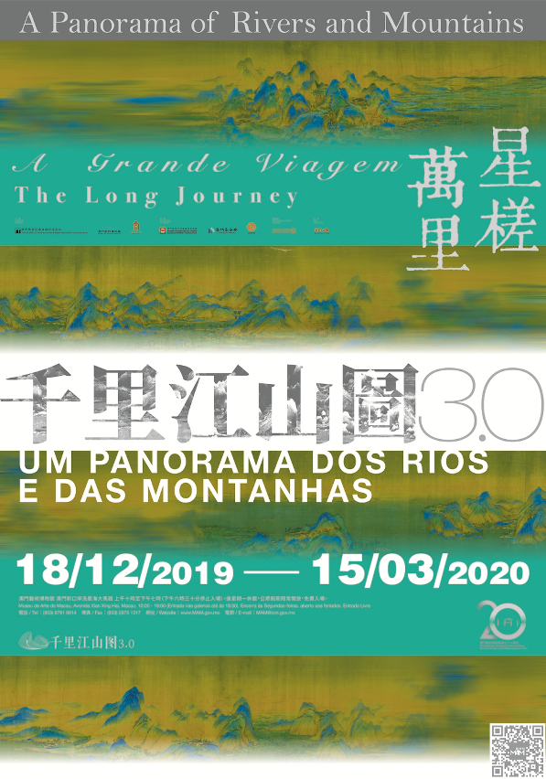 Em celebração do 70.º aniversário da fundação da República Popular da China e do 20.º aniversário da Transferência da Administração de Macau para a China, o MAM e o Museu do Palácio organizaram uma série inédita de exposições de grande escala sob o título “A Grande Viagem”, com o intuito de exibir vários tesouros culturais relacionados com a Rota Marítima da Seda e de dar a conhecer ao público a magnífica história do intercâmbio cultural entre a China e o Ocidente. “Um Panorama dos Rios e das Montanhas” é a primeira exposição a integrar esta série, evidenciando o charme extraordinário de Um Panorama dos Rios e das Montanhas, uma das dez obras de pintura mais célebres da China, através de experiências interactivas digitais e de exibições encenadas, evocando assim as belas paisagens naturais da nossa pátria.
