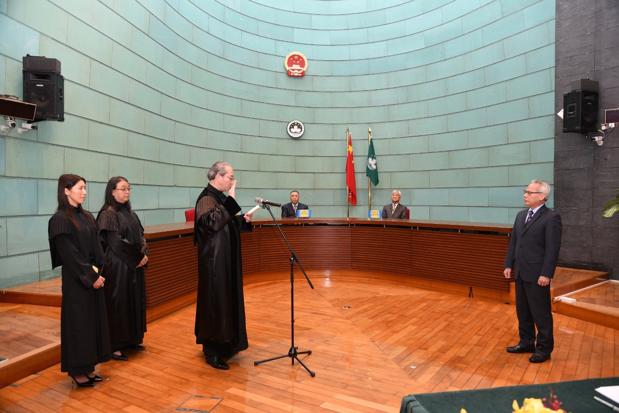Aos 17 de Dezembro de 2019, pelas 12H00, foi realizada a cerimónia da tomada de posse na sala de audiência do Edifício dos Tribunais de Segunda e Última Instâncias. Os três Juízes prestaram juramento de posse perante o Presidente do Tribunal de Última Instância, Dr. Sam Hou Fai, que presidiu à cerimónia, e teve como convidados de honra o Chefe do Executivo, Chui Sai On e o Presidente da Comissão Independente Responsável pela Indigitação de Juízes, Lau Cheok Va. Além disso, a Secretária para a Administração e Justiça, o Procurador do MP, o Comissário do CCAC, os membros da Comissão Independente Responsável pela Indigitação de Juízes, os membros do Conselho dos Magistrados do MP, o Presidente da AAM, os Juízes dos tribunais das várias instâncias e os Delegados do Procurador, os dirigentes dos demais Serviços e os trabalhadores dos tribunais também presenciaram e testemunharam a tomada de posse dos três Juízes.