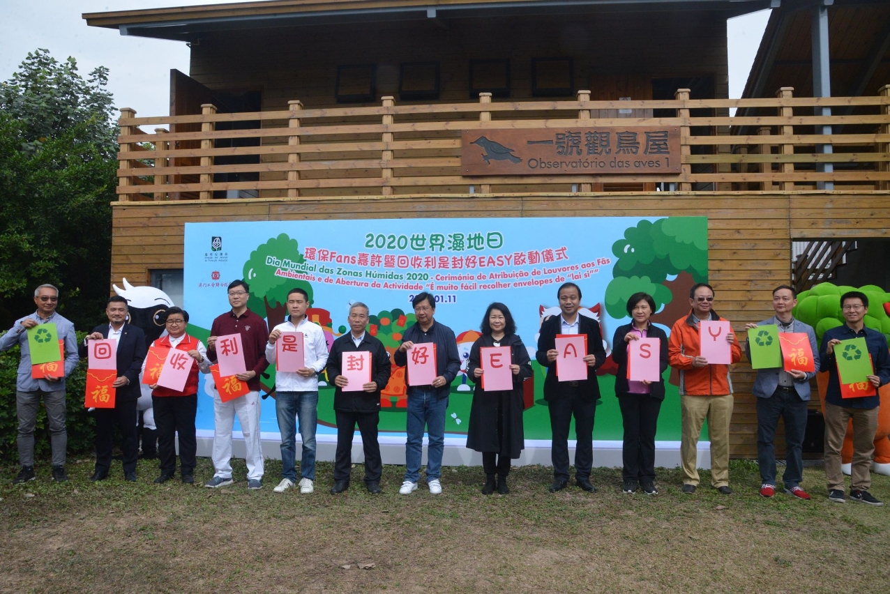 O Dia Mundial das Zonas Húmidas 2020 – Cerimónia de Atribuição de Louvores aos Fãs Ambientais e de Abertura da Actividade É Muito Fácil Recolher Envelopes de “Lai Si”, organizado pela Direcção dos Serviços de Protecção Ambiental (DSPA), visa atribuir louvores aos Fãs Ambientais que auxiliam as visitas guiadas ecológicas. Durante o Ano Novo Chinês, a DSPA vai continuar a realizar a Actividade É Muito Fácil Recolher Envelopes de “Lai Si” para estimular a reutilização e a recolha de envelopes de “lai si” por parte da população.