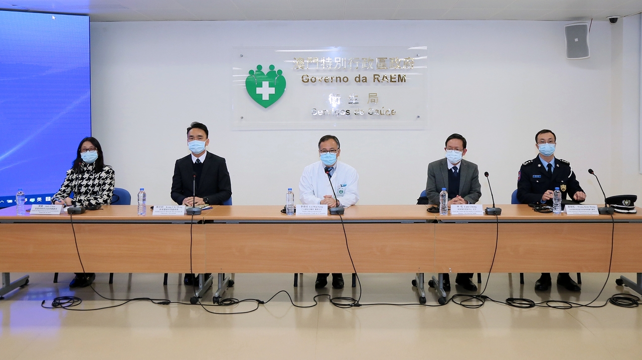 O Centro de Coordenação de Contingência do Novo Tipo de Coronavírus (doravante denominado Centro de Coordenação) realizou uma conferência de imprensa, hoje (dia 27 de Janeiro), para anunciar a situação mais recente sobre o novo coronavírus e as várias medidas de prevenção e controlo em Macau. Estiveram presentes neste evento: o Médico-Adjunto do Centro Hospitalar Conde de São Januário, Dr. Lei Wai Seng, o Subdirector da Direcção dos Serviços de Educação e Juventude, Dr. Kong Chi Meng, o Coordenador do Centro de Prevenção e Controlo da Doença dos Serviços de Saúde, Dr. Lam Chon, o Chefe do Departamento de Licenciamento e Inspecção da Direcção dos Serviços de Turismo, Dra. Chan Lou, o Chefe substituto do Departamento para os Assuntos de Residência e Permanência do Corpo de Polícia de Segurança Pública, o Subintendente Wong Kim Hong.
