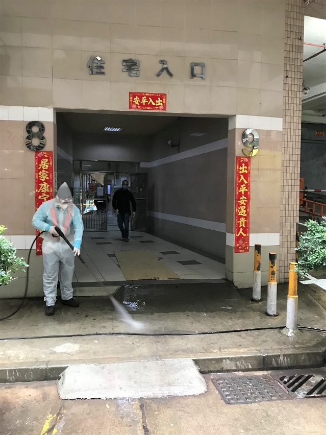 Atendendo às mais recentes actualizações sobre a pneumonia do novo coronavírus e em sintonia com os respectivos trabalhos de prevenção e controlo, o IAM, hoje (4 de Fevereiro), após a recepção da comunicação, coordenou de imediato com a CSR- Companhia de Sistemas de Resíduos, Limitada para destacar mais pessoal, procedendo a uma operação de limpeza e desinfecção de grande escala nas ruas circundantes da residência do 9.º caso confirmado de infecção, incluindo, o salão da entrada do edifício, elevadores, corredores, escadas e outros espaços públicos, a fim de diminuir tanto quanto possível as condições de propagação de doenças infecciosas.