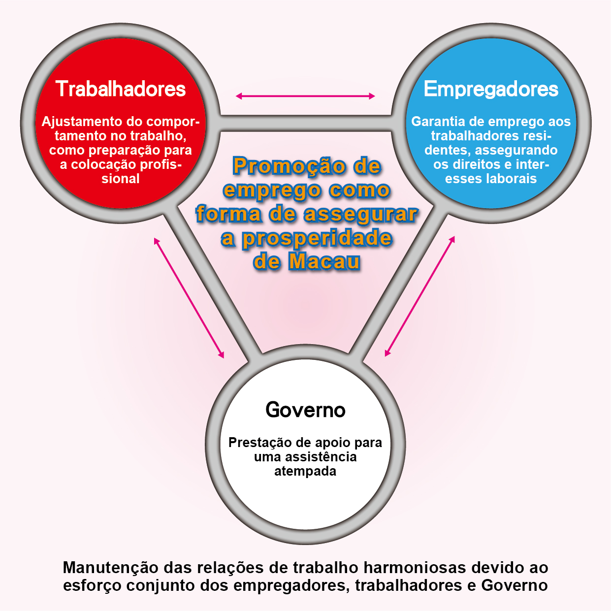 O Governo da Região Administrativa Especial de Macau atribui grande importância à situação de emprego dos residentes de Macau e à evolução do mercado de trabalho, continuando a prestar serviços de apoio aos residentes com necessidade de emprego, mantendo uma boa comunicação com as empresas, proporcionando conjugação de emprego adequada e equilibrada com a oferta e a procura de recursos humanos.