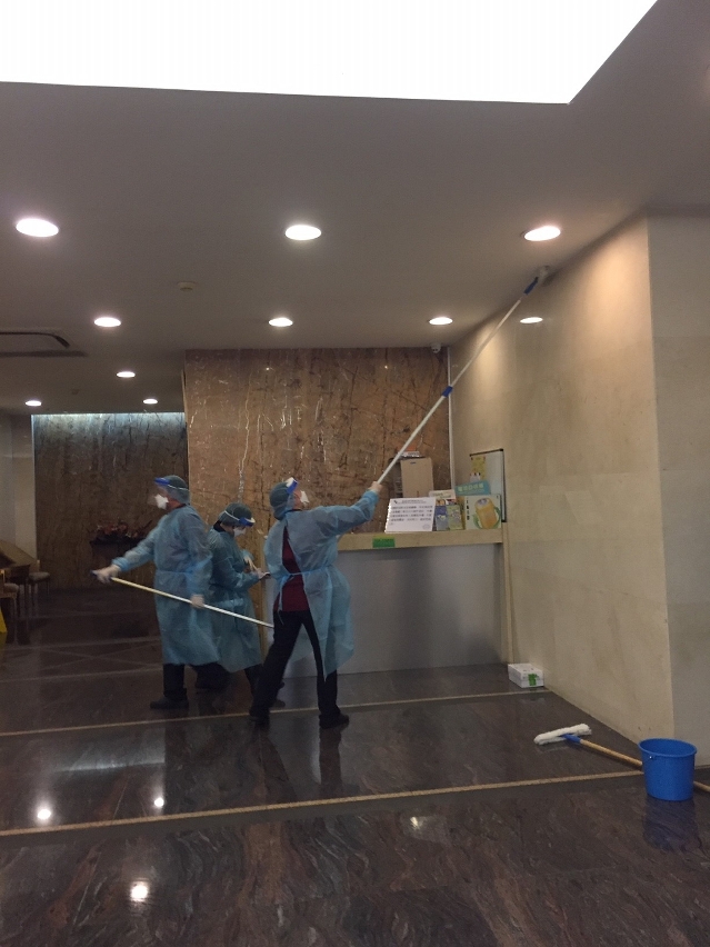 Atendendo às mais recentes actualizações sobre a infecção por novo tipo de coronavírus e em sintonia com os respectivos trabalhos de prevenção e controlo, o Instituto para os Assuntos Municipais (IAM), coordenou de imediato com a CSR-Companhia de Sistemas de Resíduos, Limitada e a companhia adjudicatária de limpeza, para que hoje (18 de Março) fosse destacado mais pessoal, procedendo-se a uma operação de limpeza e desinfecção de grande escala nas ruas circundantes da residência do 14.º caso confirmado de infecção de Macau, incluindo o hall de entrada do edifício, elevadores, corredor do andar em causa, escadas e outros espaços públicos, a fim de diminuir, tanto quanto possível, as condições de propagação de doenças infecciosas.