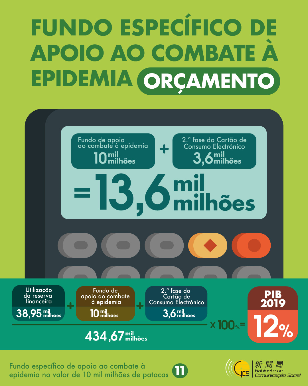 • Infografia: Fundo específico de apoio ao combate à epidemia no valor de 10 mil milhões de patacas