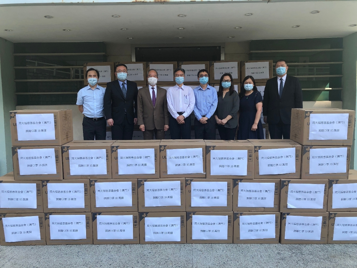 O presidente da Fundação de Caridade Chow Tai Fook (Macau), Sr. Cheng Kar Shing, doou terça-feira (5 de Maio) 100.000 máscaras ao Governo da RAEM, o Sr. Chao Hin Fai e o Dr. Zhao Lu representaram a fundação para uma entrega de máscara, que em nome do Governo da RAEM foram recebidas pelo subdirector substituto dos Serviços de Saúde Sr. Chan Weng Wa, tendo contado uma presença do chefe do Departamento de Administração Financeira, Ng Seng Cheong e do Chefe da Divisão de Aprovisionamento e Economato dos Servioçs de Saúde, Ieong Man U, as máscaras serão usadas nas medidas de prevenção de epidemias do Governo da RAEM