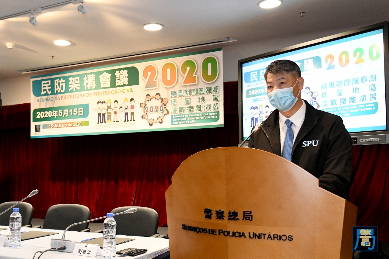 O Comandante de Acção Conjunta e Comandante-geral dos Serviços de Polícia Unitários, Leong Man Cheong, presidiu, na manhã do dia 15 de Maio, a “Reunião da Estrutura de Protecção Civil de 2020”. A reunião teve lugar no Edifício do Serviço de Migração de Pac On e contou com a presença de representantes das 30 entidades públicas e privadas que compõem a estrutura de protecção civil.