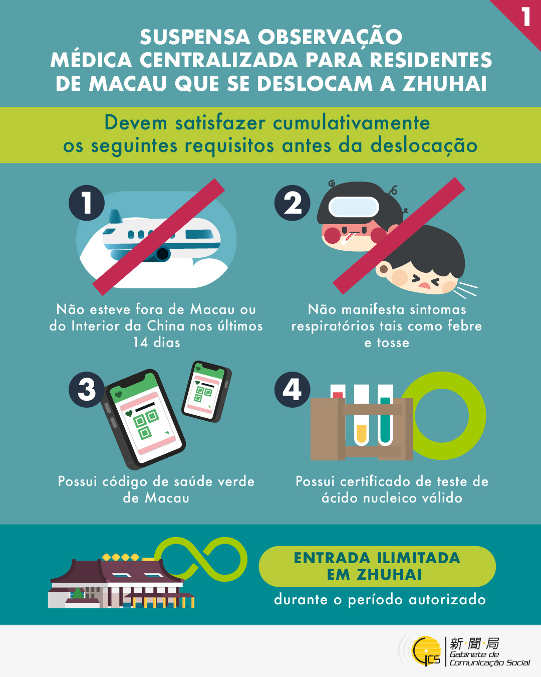 Suspensa observação médica centralizada para residentes de Macau que se deslocam a Zhuhai
