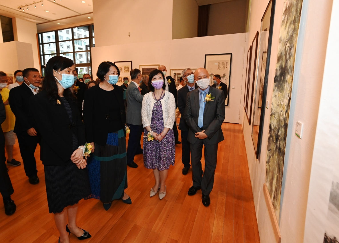 Co-organizado pelo Instituto Cultural (IC) e pelo Departamento de Propaganda e Cultura do Gabinete de Ligação do Governo Popular Central na Região Administrativa Especial de Macau, o evento “Todos Juntos no Combate à Epidemia com a Cultura - Exposição de Arte de Macau” foi inaugurado no dia 8 de Julho (Quarta-feira), pelas 18:30 horas, no Museu das Ofertas sobre a Transferência de Soberania de Macau. A cerimónia de inauguração foi presidida pela Secretária para os Assuntos Sociais e Cultura do Governo da Região Administrativa Especial de Macau, Ao Ieong U, pela Vice-directora do Gabinete de Ligação do Governo Popular Central na Região Administrativa Especial de Macau, Yan Zhichan; pela Presidente do Instituto Cultural do Governo da Região Administrativa Especial de Macau, Mok Ian Ian; pelo Director do Departamento de Propaganda e Cultura do Gabinete de Ligação do Governo Popular Central na Região Administrativa Especial de Macau, Wan Sucheng; pelo Presidente da Associação dos Calígrafos e Pintores Chineses Yu Un de Macau, Chui Sai Cheong; pelo Director do Jornal Macao Daily News, Lok Po; pelo Presidente da Comissão Executiva da TDM - Teledifusão de Macau, S.A., Manuel Pires; pelo Presidente da Associação de Mestres de Arte de Macau, Lai Ieng; pelo Presidente da Associação dos Artistas de Belas-Artes de Macau, Lok Hei; pelo Presidente da Associação de Incentivar Políticas da Humanidades de Sabedoria de Macau, Ng Choi Kun; pelo Presidente da Associação dos Calígrafos e Escultores de Selos de Macau, Sio Chun Un; pelo Presidente da Associação Cultural e Arte de Chong Fong, Sou Kan Leong; pelo Presidente da Associação de Arte a Tinta de Macau, Mak Lei; e pelo Presidente da Revista Art Review, Lao Fu Ip.