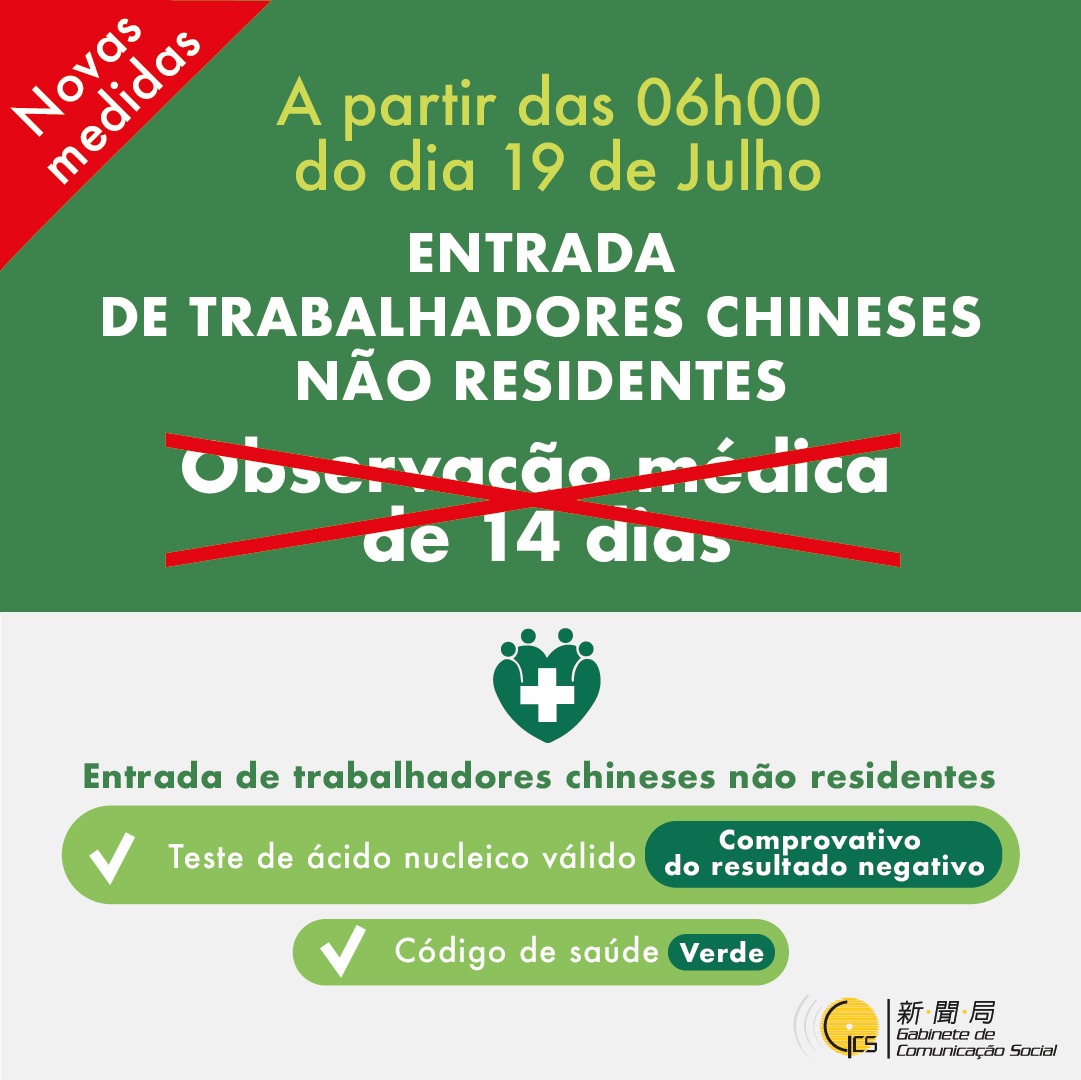 • Canceladas medidas de quarentena a trabalhadores chineses não residentes em Macau