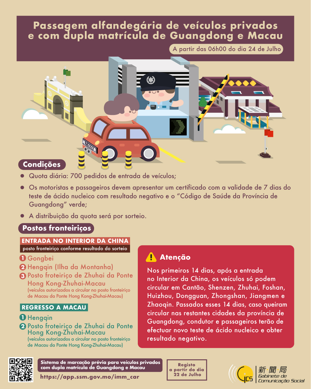 • (Infografia) Passagem alfandegária de veículos privados e com dupla matrícula de Guangdong e Macau