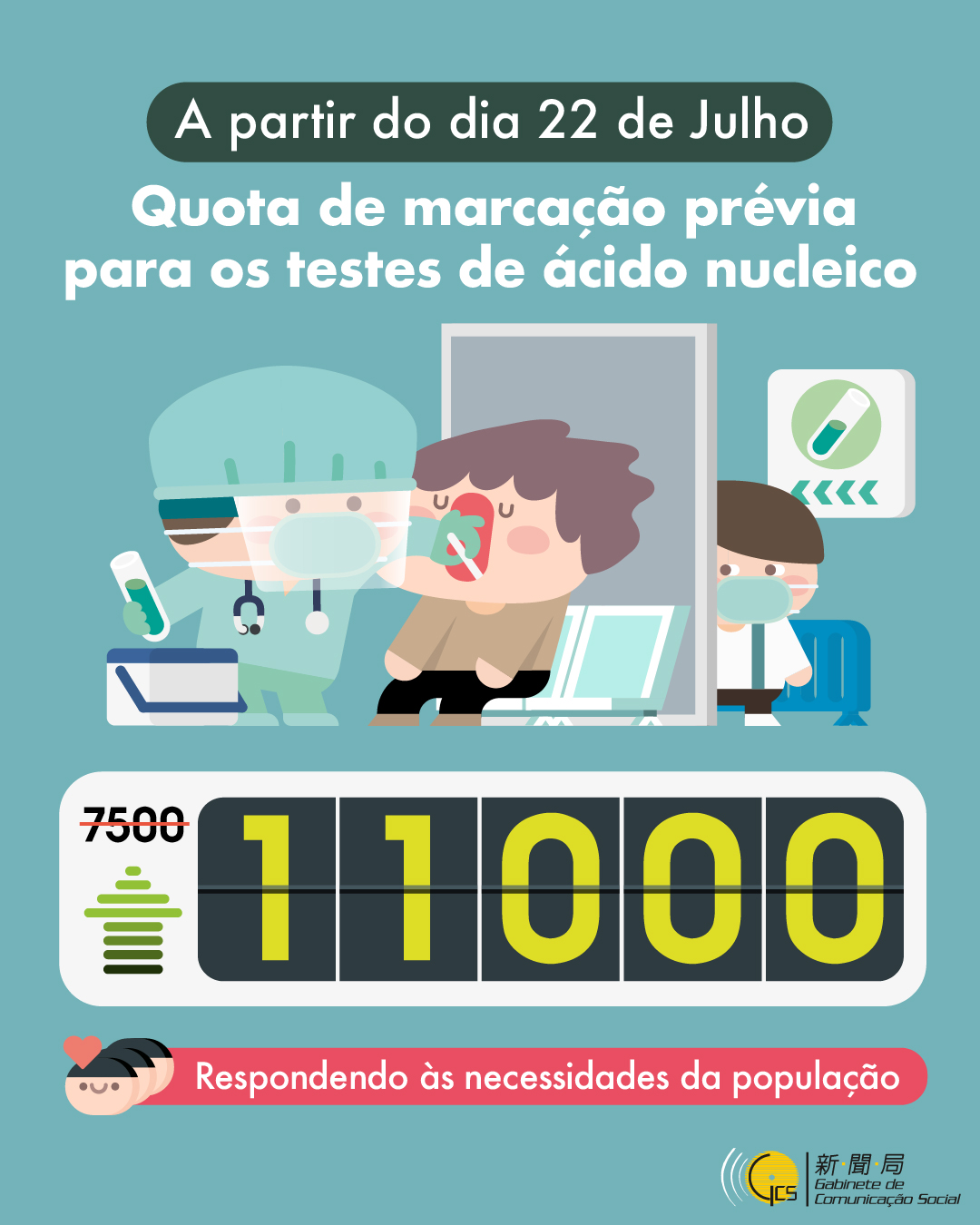 Quota de marcação prévia para os testes de ácido nucleico aumenta para 11000