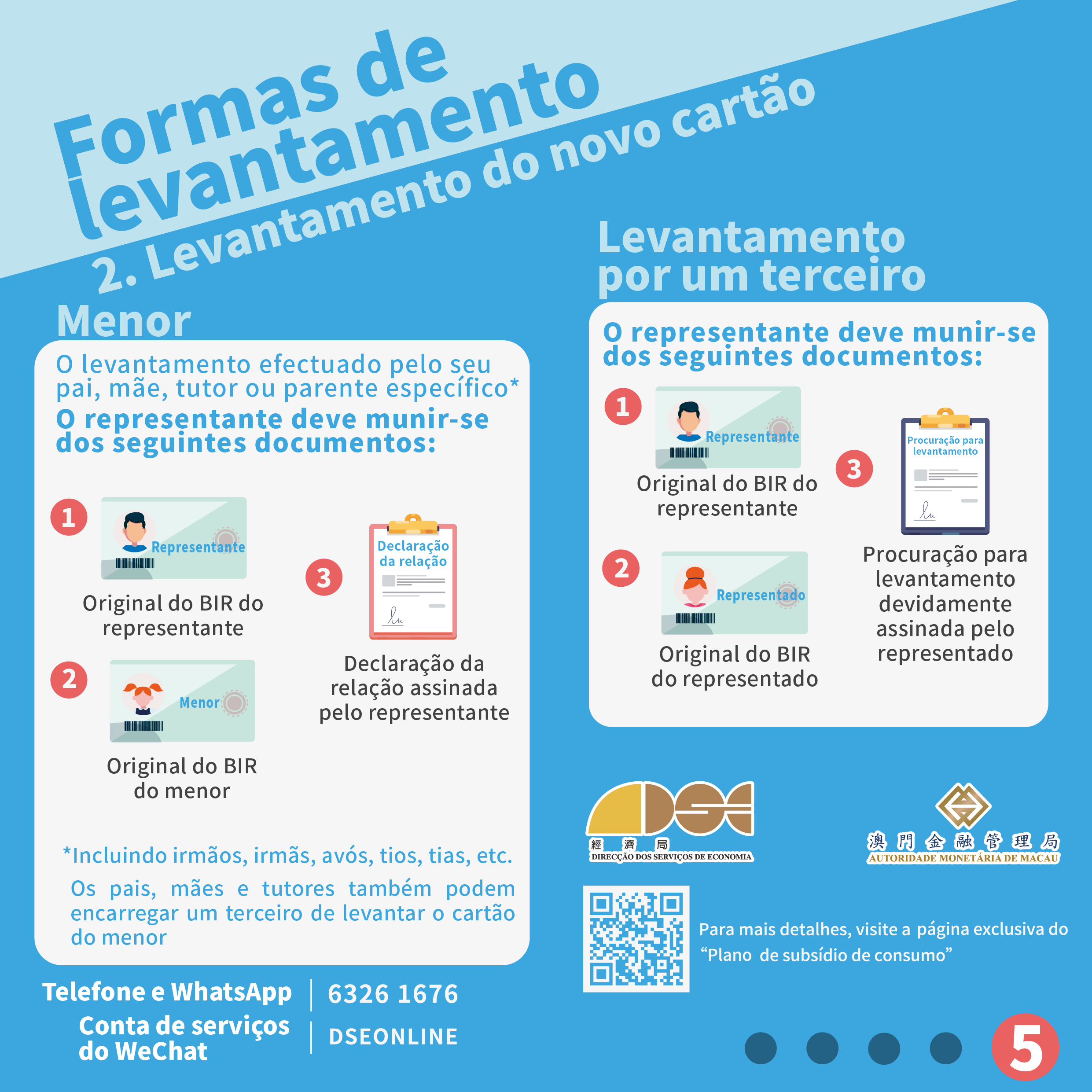 Os residentes também podem consultar as informações sobre o Plano através do Whatsapp (63261676), da conta de serviços de Wechat (DSEONLINE) ou do e-mail ( consumo@economia.gov.mo ).