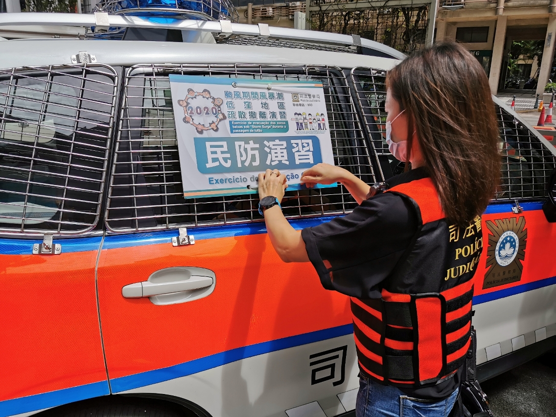 Macau encontra-se em plena época de tufões e assim, sob a coordenação dos Serviços de Policia Unitários, a Polícia Judiciária realizou mais uma vez o simulacro do “Plano de evacuação das zonas baixas em situações de Storm Surge durante a passagem de tufões” com o objectivo de garantir que os cidadãos sigam as indicações das autoridades, durante a passagem de tufões, para se proceder rapidamente e de forma ordenada à evacuação, de forma a salvaguardar a vida e os bens dos cidadãos. Este exercício tem por objectivo dar a conhecer aos cidadãos, de uma forma clara, o conteúdo do plano de evacuação bem como é desenvolvida a cooperação entre as autoridades policiais na execução desse plano. Em simultâneo, pretende-se com ele melhorar a comunicação entre o pessoal do plano de evacuação e o centro de comando, a sua capacidade de colaboração, optimizando-se os diversos planos de emergência, a fim de melhorar a execução do plano de evacuação.