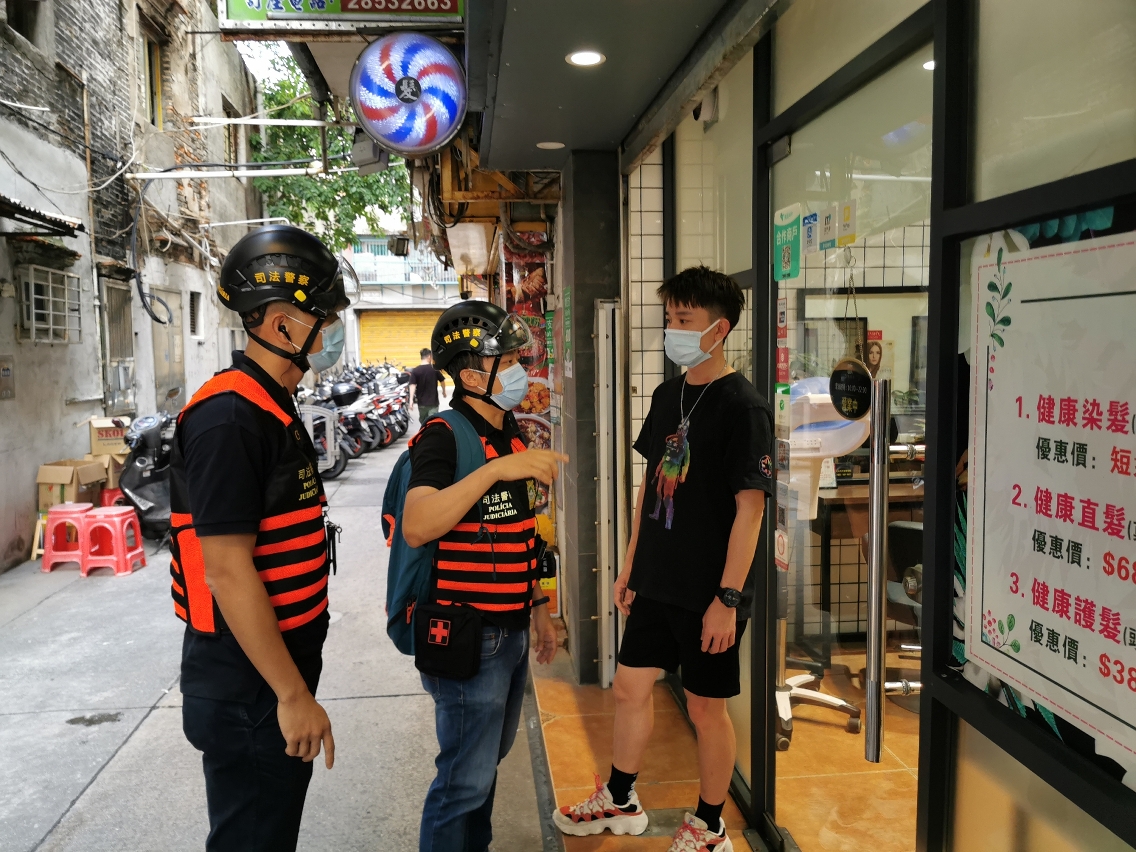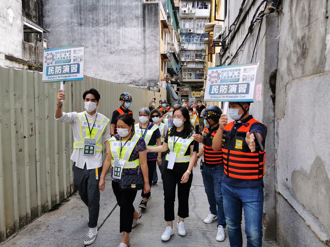 Entretanto, a PJ fez exercícios específicos juntamente com as associações cívicas, de encaminhamento de pessoas com necessidades ao centro de abrigo. Foi também simulada a situação de se encontrarem residentes com ferimentos durante a evacuação e neste caso, de imediato, o pessoal da equipa do plano de evacuação comunicou ao centro de comando para enviar viaturas de patrulha ao local para apoio e testar a capacidade de resposta do pessoal ao enfrentar incidentes súbitos bem como a capacidade de cooperação do centro de comando, optimizando assim os diversos planos de emergência, melhorando a rapidez e a eficiência do trabalho de evacuação.