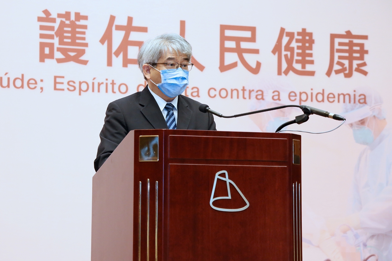 Em representação da Secretária para os Assuntos Sociais e Cultura, Dra. Ao Ieong U, o Director dos Serviços de Saúde, Dr. Lei Chin Ion, manifestou que “a actual pandemia Covid-19 é a que mais amplamente afectou a humanidade nos últimos 100 anos e é um desafio severo para todo o mundo. Com o apoio do Estado e a liderança do Chefe do Executivo, dependendo da união de todos os sectores da sociedade na superação de todas as dificuldades, o Governo da RAEM tem implementado de forma eficaz as diversas políticas e medidas de prevenção epidémica, conseguindo obter óbvios resultados positivos”, disse.