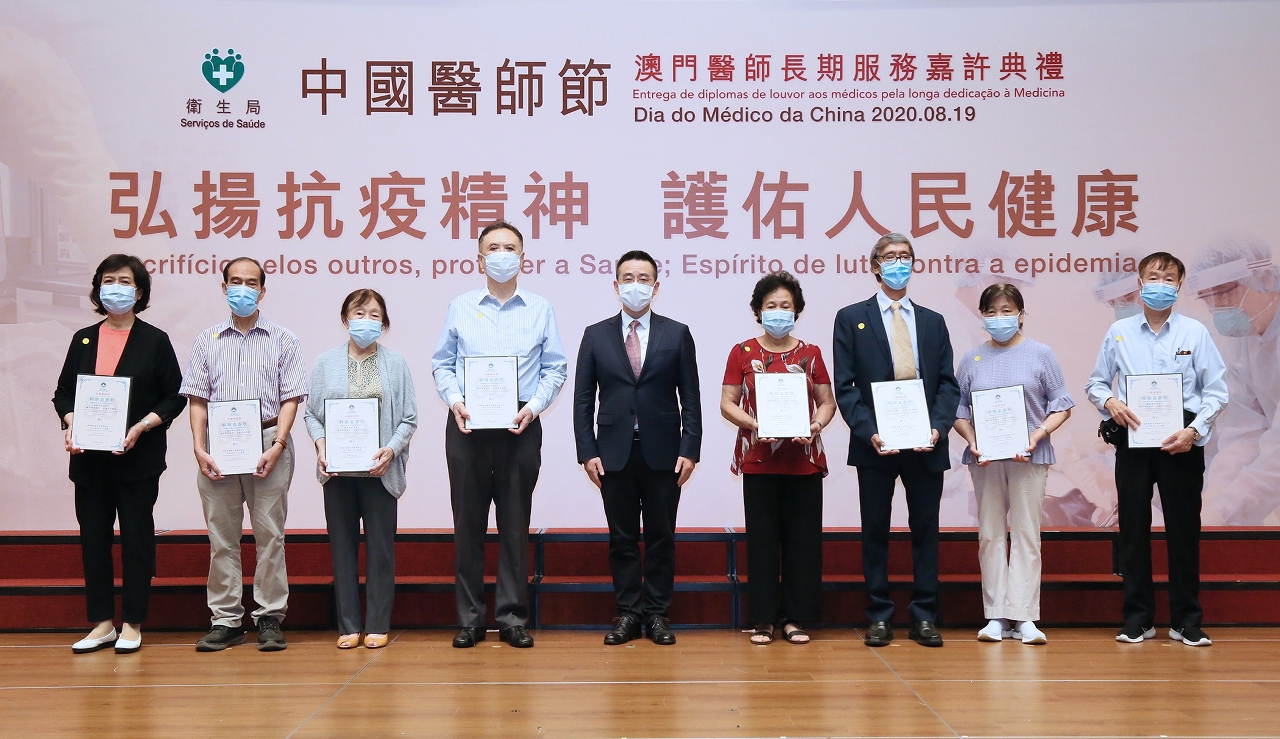 No âmbito das comemorações do “Dia do Médico da China”, assinalado anualmente no dia 19 de Agosto, os Serviços de Saúde realizaram quinta-feira (20 de Agosto) um cerimónia intitulada “Sacrifício pelos outros, proteger a saúde; Espírito de luta contra a epidemia” de modo a promover o espírito, dedicação e profissionalismo desinteressado e reconhecer os médicos, com prestação de serviços médicos a longo prazo, através da entrega de diplomas de louvor.