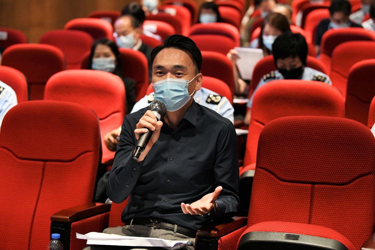 Em articulação com a entrada em vigor da Lei n.º 11/2020 “Regime Jurídico de Protecção Civil” no dia 15 de Setembro, a estrutura de protecção civil realizou, hoje (dia 4), uma sessão de esclarecimento no Edifício do Serviço de Migração em Pac On. O evento contou com a presença do Secretário para a Segurança, Wong Sio Chak, Comandante de Acção Conjunta e Comandante-geral dos Serviços de Polícia Unitários (SPU), Leong Man Cheong, Director-geral dos Serviços de Alfândega, Vong Man Chong, e os demais representantes das entidades que compõem a estrutura de protecção civil.