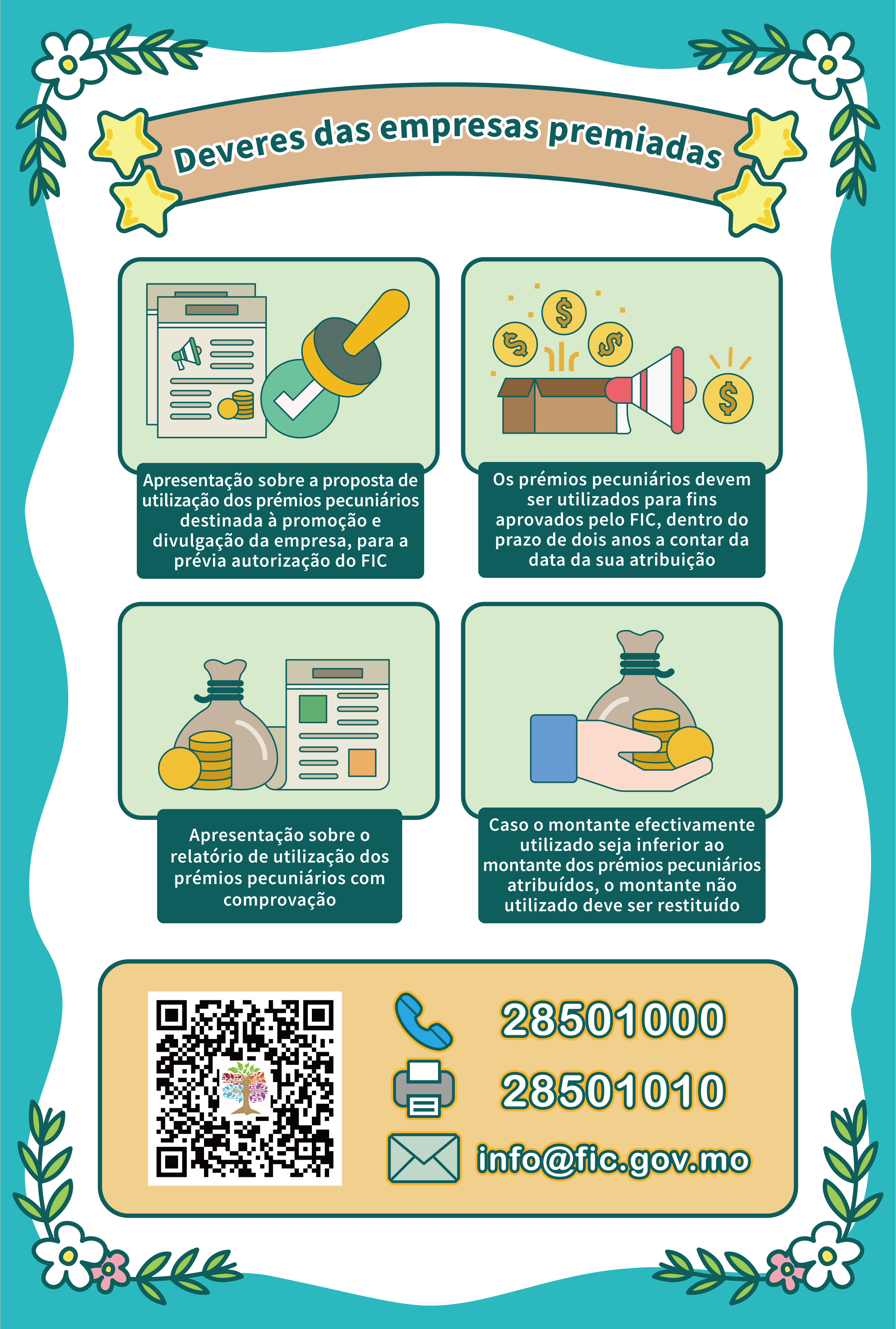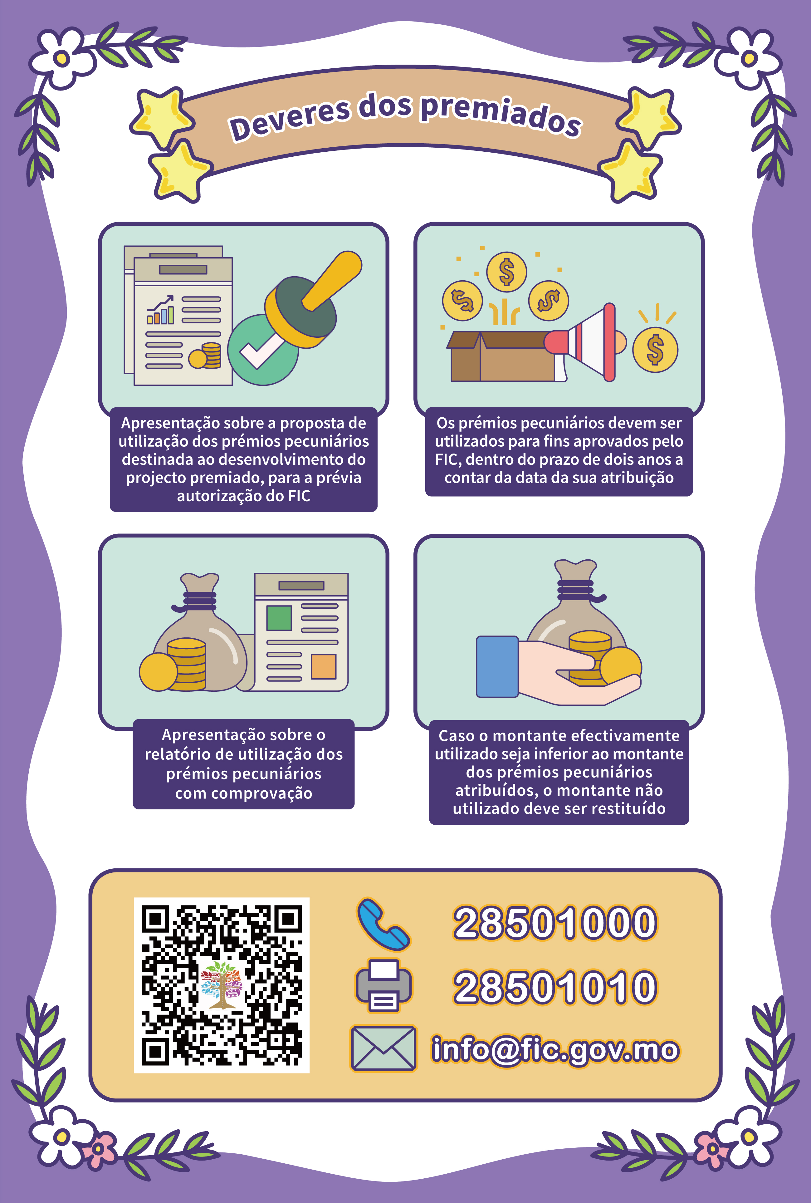 Os interessados podem descarregar o Boletim de Candidatura na página electrónica ( www.fic.gov.mo ). Para quaisquer dúvidas, queira contactar o FIC, através do n.º de telefone 2850 1000 ou por e-mail ( info@fic.gov.mo ).