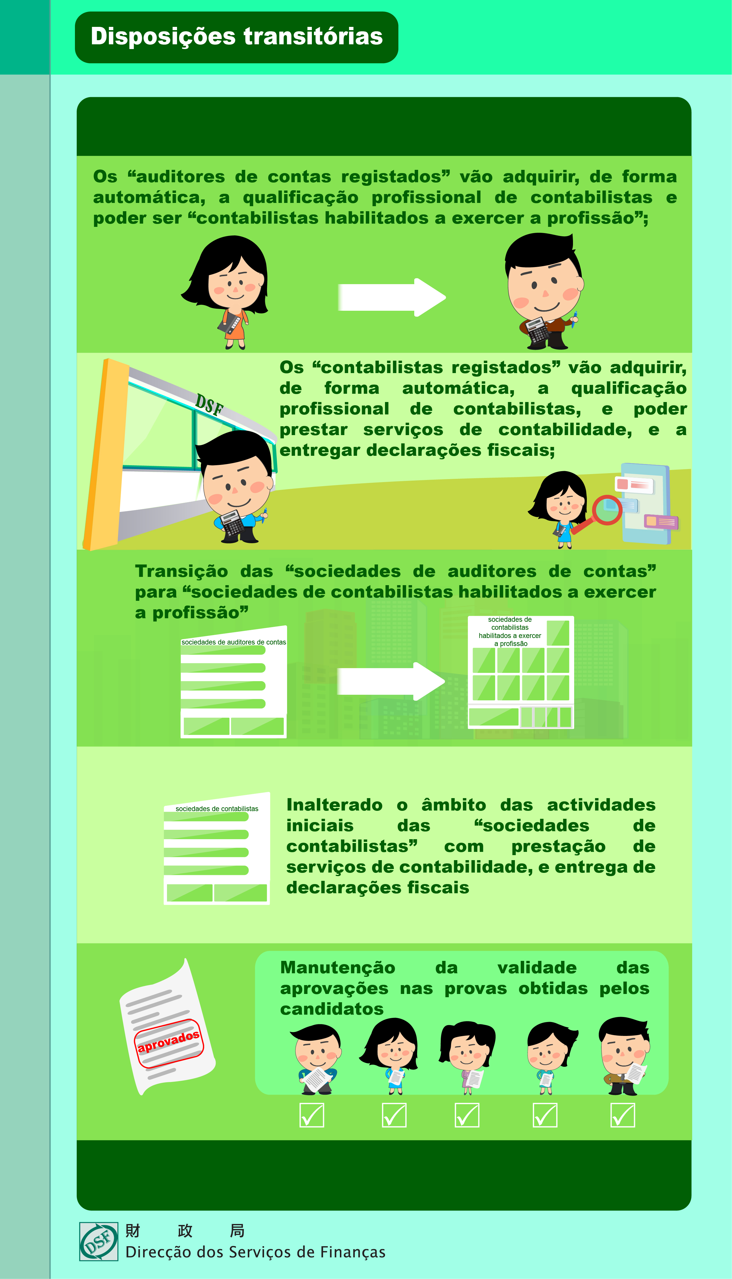 Além disso, com vista a melhor proteger os direitos e interesses adquiridos de todos os interessados, a lei dispõe, ainda, de disposições transitórias detalhadas para o novo regime, relativamente aos actuais auditores de contas registados, à suspensão dos auditores de contas registados, aos contabilistas registados, à suspensão dos contabilistas registados, às sociedades de auditores de contas, às sociedades de contabilistas e aos candidatos, bem como cria condições mais favoráveis para dar apoio aos profissionais, no que diz respeito à elevação da qualificação profissional.