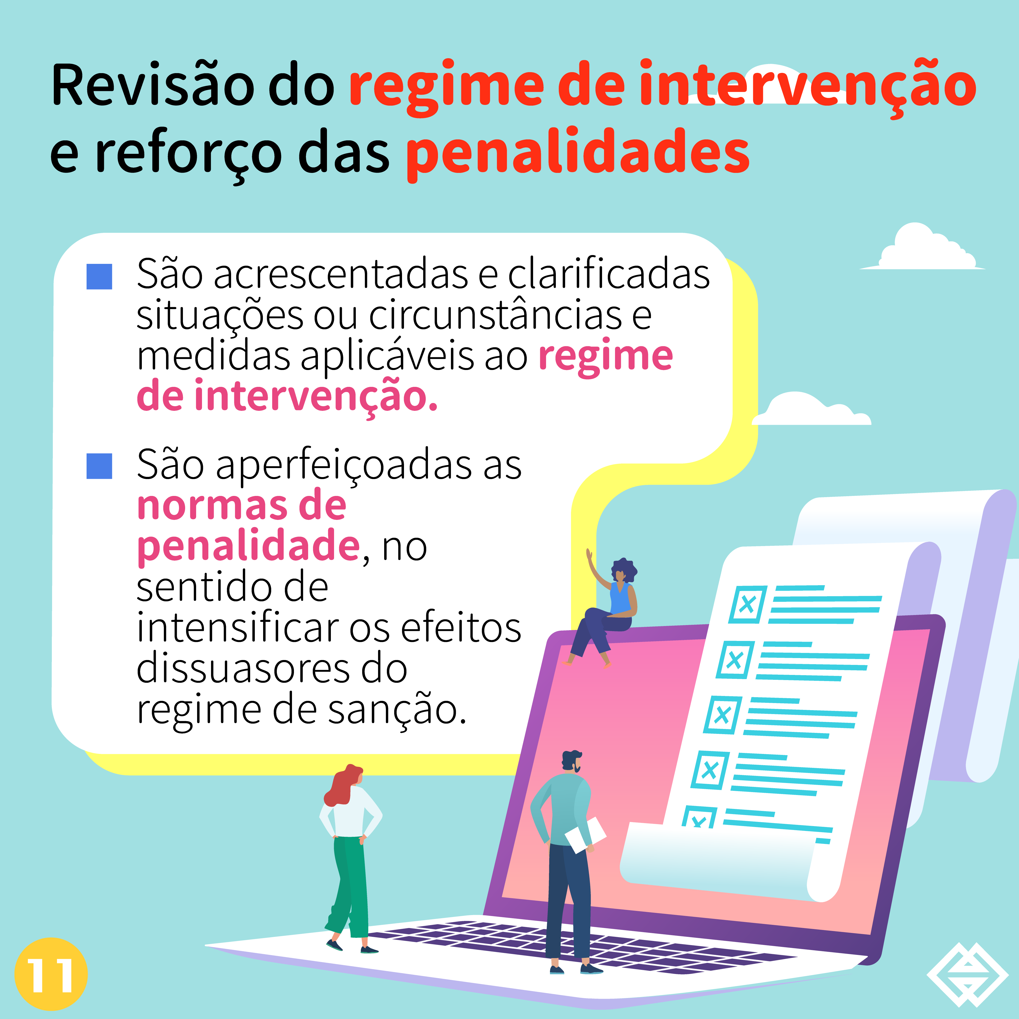 4.o Revisão do regime de intervenção e reforço das penalidades, aumento e esclarecimento do elenco de situações e medidas aplicáveis ao regime de intervenção, bem como aperfeiçoamento das normas de penalidade, intensificando os efeitos dissuasores do regime de sanção.