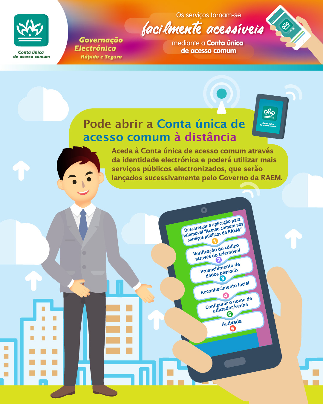 A “Conta única de acesso comum” é constituída por uma plataforma electrónica uniformizada de serviços públicos legalmente estabelecida na RAEM, cuja gestão cabe ao SAFP. Actualmente, os cidadãos podem facilmente abrir conta à distância, bastando para tal descarregar a aplicação para telemóvel “Acesso comum aos serviços públicos da RAEM”, introduzir o número de telemóvel para obter o código de verificação, preencher os dados pessoais, fazer o reconhecimento facial de acordo com as instruções, dar o seu consentimento para efeitos de utilização e definir o nome do utilizador e a senha para, de imediato, ser-lhe reconhecida a identificação electrónica online para concluir, com sucesso, a abertura da “Conta única de acesso comum”. Assim, o titular da conta pode aceder aos serviços públicos electrónicos do Governo da RAEM, fazendo login da “Conta única de acesso comum” mediante a identidade electrónica.