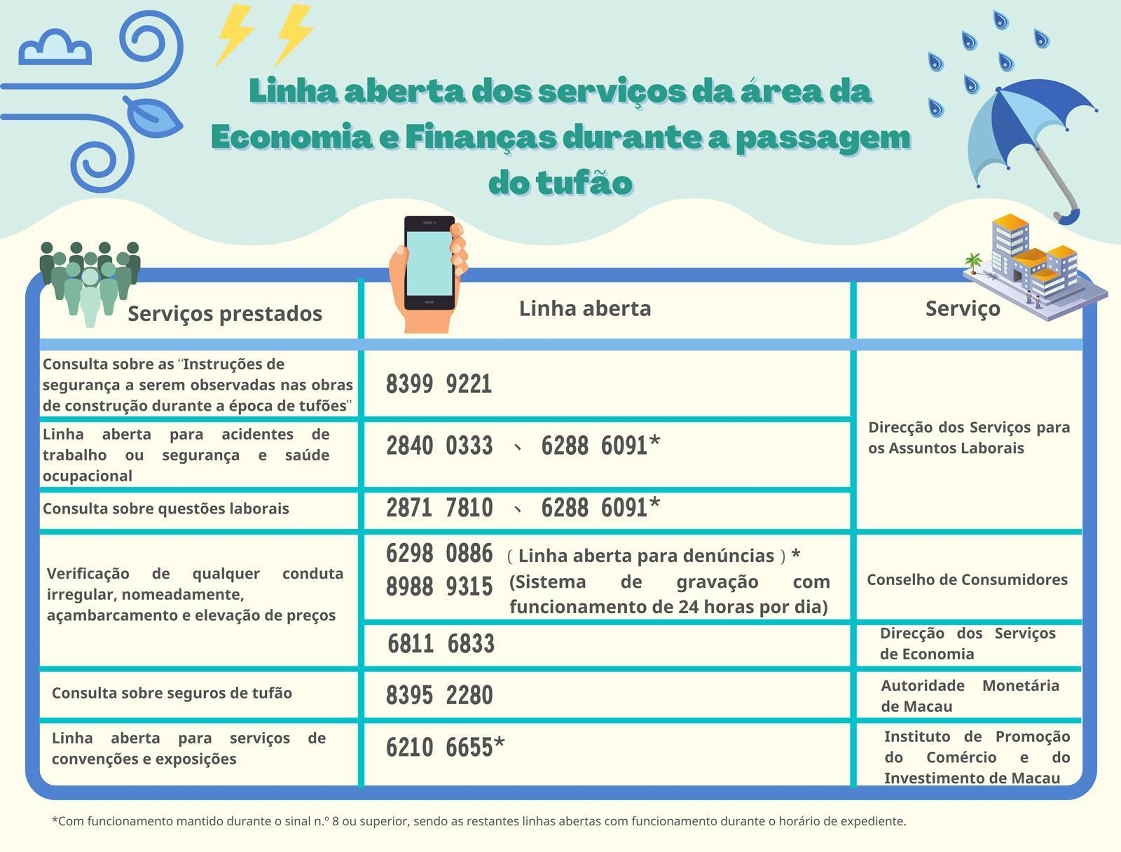 • Linha aberta dos serviços da área da Economia e Finanças durante a passagem do tufão