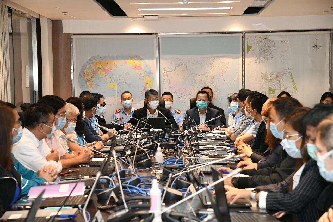 Ao içar o sinal n.º 8 de tempestade tropical, o Chefe do Executivo interino, Cheong Weng Chon, deslocou-se ao COPC, onde ouviu a apresentação da situação dos trabalhos feita pelo Comandante-geral dos Serviços de Polícia Unitários e Comandante de Acção Conjunta substituto, Leong Man Cheong, e os membros da estrutura de protecção civil. O Chefe do Executivo interino instruiu os membros da estrutura de protecção civil para estarem bem preparados e manterem em estreita colacoração na resposta à tempestade tropical, salientando que os trabalhos de prevenção a desastres naturais bem feitos facilitam o desenvolvimento dos trabalhos de resposta. O mesmo dirigente salientou que esta primeira activação da estrutura de protecção civil desde a entrada em vigor do novo regime constitui um verdadeiro teste sobre o seu funcionamento e que a experiência adquirida nesta ocasião servirá para aperfeiçoar os procedimentos de modo a estar melhor preparada para os futuros desafios.
