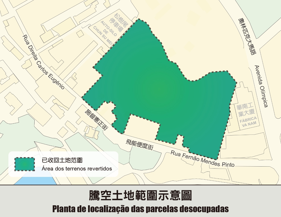 No terreno onde funcionava a Fábrica de Panchões Iec Long teve lugar a primeira fase da acção de despejo no início do ano transacto, o que permitiu recuperar parcelas com a área de aproximadamente 17 973 m2, cuja concessão caducou. Esta segunda fase da acção permite recuperar parcelas com a área de aproximadamente 6 598 m2. Deste modo, a área recuperada totaliza 24 571 m2.