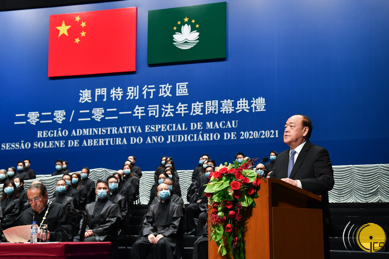O Chefe do Executivo da Região Administrativa Especial de Macau (RAEM), Ho Iat Seng, discursou, hoje (14 de Outubro), na sessão solene de abertura do Ano Judiciário de 2020/2021, afirmando que, com o novo ponto de partida, pautado pelo mote «esforço no avanço, união na inovação», o governo dá continuidade ao passado e assume com firmeza a actuação conforme a lei, como critério fundamental da governação da RAEM, e sob o princípio da governação à luz da lei, aperfeiçoa constantemente os regimes e os sistemas e elava a capacidade e a eficácia da acção governativa.