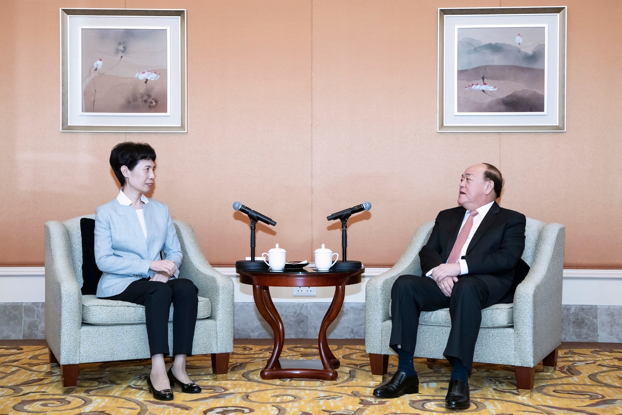 O Chefe do Executivo, Ho Iat Seng, teve hoje (22 de Outubro), um encontro com a presidente do Conselho Chinês para a Promoção do Comércio Internacional (CCPIT, na sigla inglesa), Gao Yan, no qual foram trocadas impressões sobre a diversificação adequada da economia, as oportunidades oriundas do desenvolvimento da Grande Baía Guangdong-Hong Kong-Macau e da plataforma entre a China e os países da língua portuguesa.