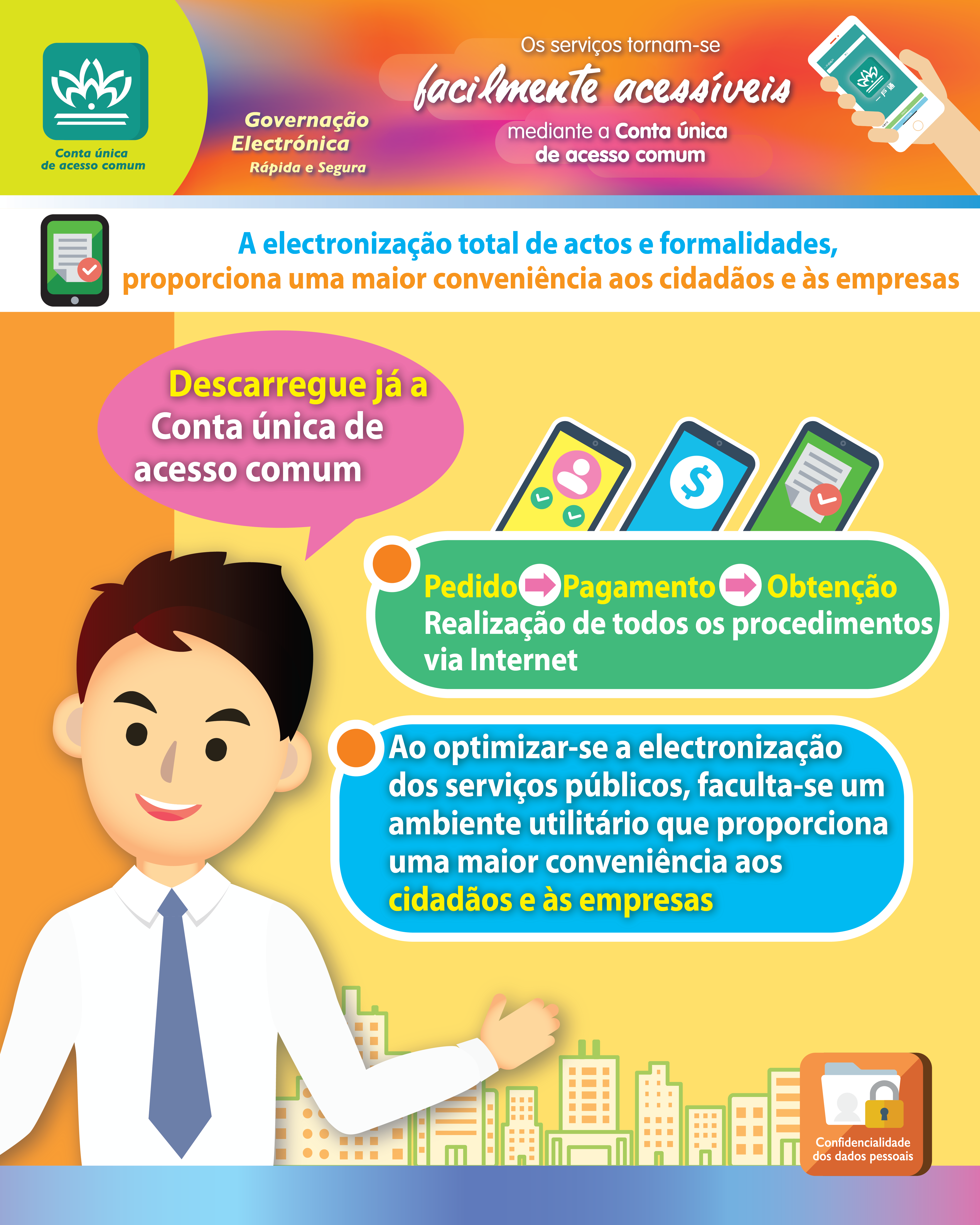 Já foram adicionadas à plataforma Conta única de acesso comum aos serviços público da RAEM (doravante designada por Conta única de acesso comum) sete modalidades de prestação de serviços electrónicos, que abrangem desde o pedido à obtenção de certidões electrónicas, bem como a emissão de declarações. Os cidadãos que abriram com sucesso a Conta única de acesso comum podem, mediante a correspondente página electrónica ou a aplicação para telemóvel, realizar todos os procedimentos via Internet e efectuar o pagamento electrónico. Actualmente a Conta única de acesso comum assegura trinta e três modalidades de serviços electrónicos. O SAFP continuará a orientar as actividades da governação electrónica, coordenando e cooperando com os diversos serviços públicos, por forma a promover a electronização dos serviços electrónicos e a estimular um ambiente utilitário que proporciona uma maior conveniência aos cidadãos e às empresas.